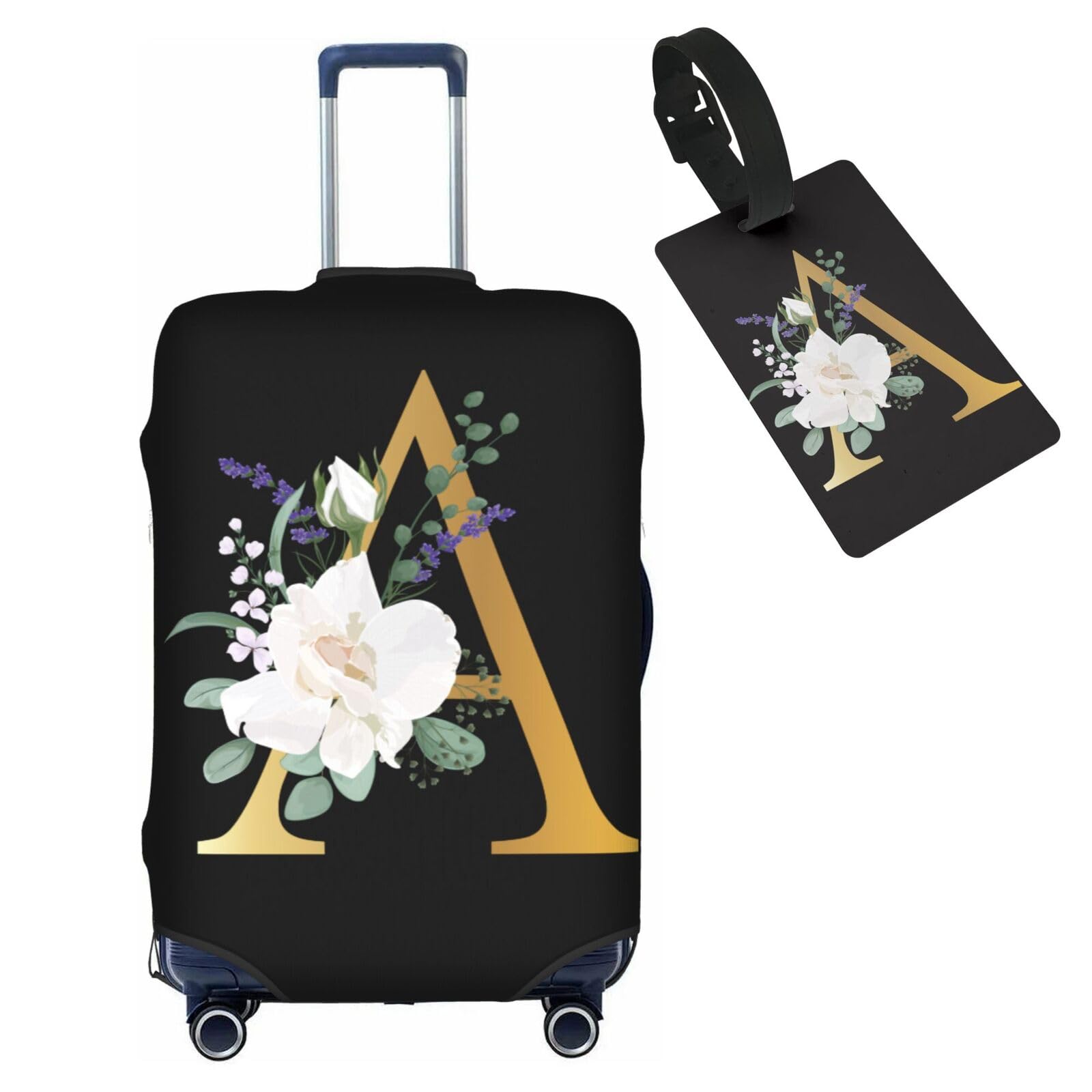 HAUYE Flower Letter A Black Luggage Cover with Luggage Tag Elastic Washable Stretch Suitcase Protector Anti-Scratch Travel Suitcase Cover for Kid and