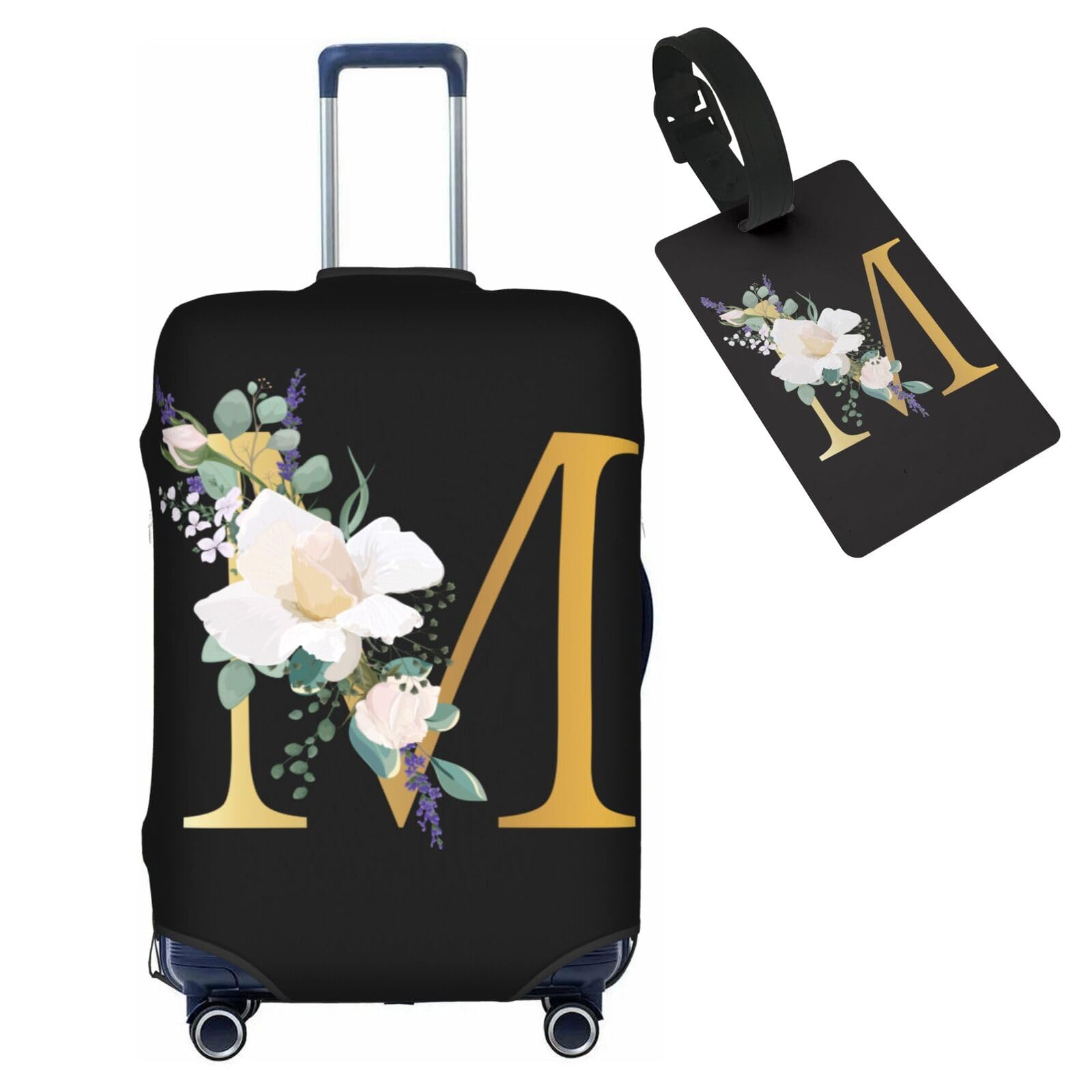 HAUYE Flower Letter M Black Luggage Cover with Luggage Tag Elastic Washable Stretch Suitcase Protector Anti-Scratch Travel Suitcase Cover for Kid and