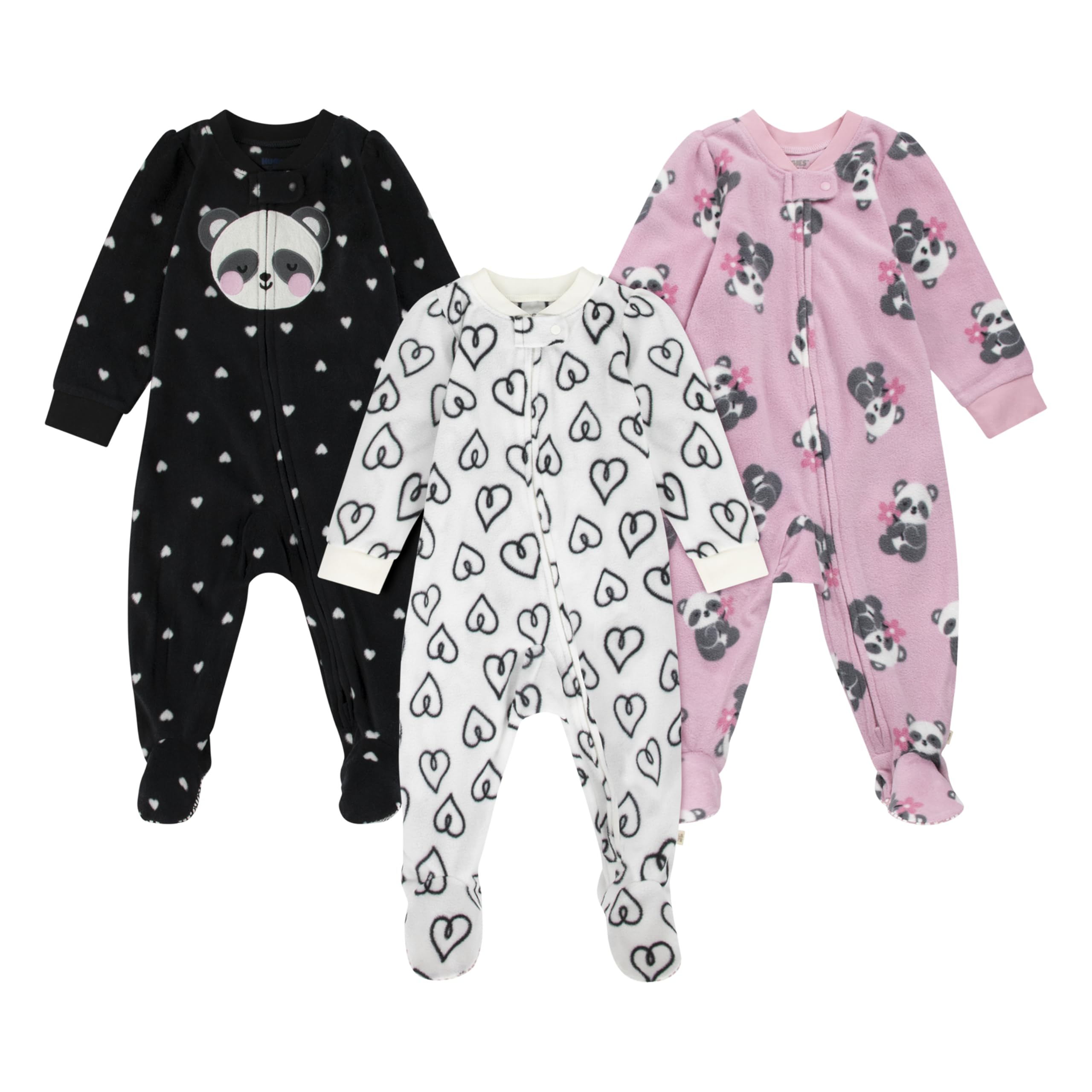 BABY GENTLE FABRICS: Made of soft poly microfleece fabric containing recycled fibers EASY CHANGE DESIGN: 2-way full-zip closure makes changing, dressing or layering over a bodysuit easy COZY FUNCTION: Footed bottoms have silicone gripper patterns MULTIPLE OPTIONS: Includes 3 sleep coveralls featuring different prints