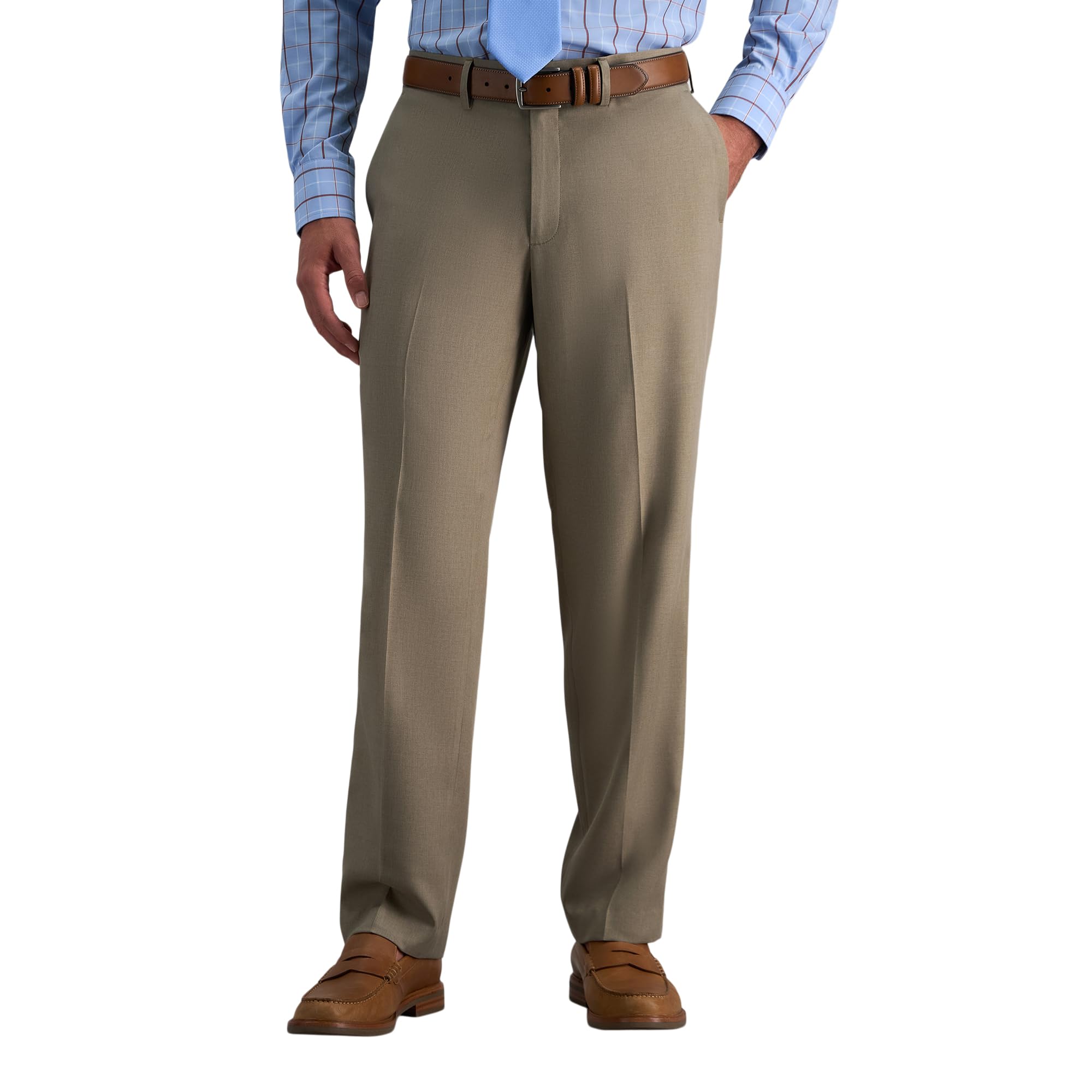 PREMIUM COMFORT DESIGN: Crafted for all-day ease, this straight fit dress pant features Haggar’s hidden expandable waistband, offering up to 3" of stretch to move with you while maintaining a clean, polished silhouette. SUSTAINABLE STYLE: Made from a soft melange broken twill blend using 33% recycled polyester, this pant not only looks sharp but supports a greener future—because looking good should also feel good. WRINKLE-RESISTANT FABRIC: Stay crisp from your morning meeting to evening plans with a wrinkle-free finish that minimizes the need for ironing and keeps your pant looking freshly pressed all day long. EVERYDAY FUNCTIONALITY: Includes off-seam front pockets and double welt button-through back pockets to hold your essentials securely, along with a hook and bar closure for a sleek, professional look. EASY CARE WEAR: This dress pant is machine washable and retains its color and shape wash after wash, offering a low-maintenance solution for the modern man who values both convenience and longevity.