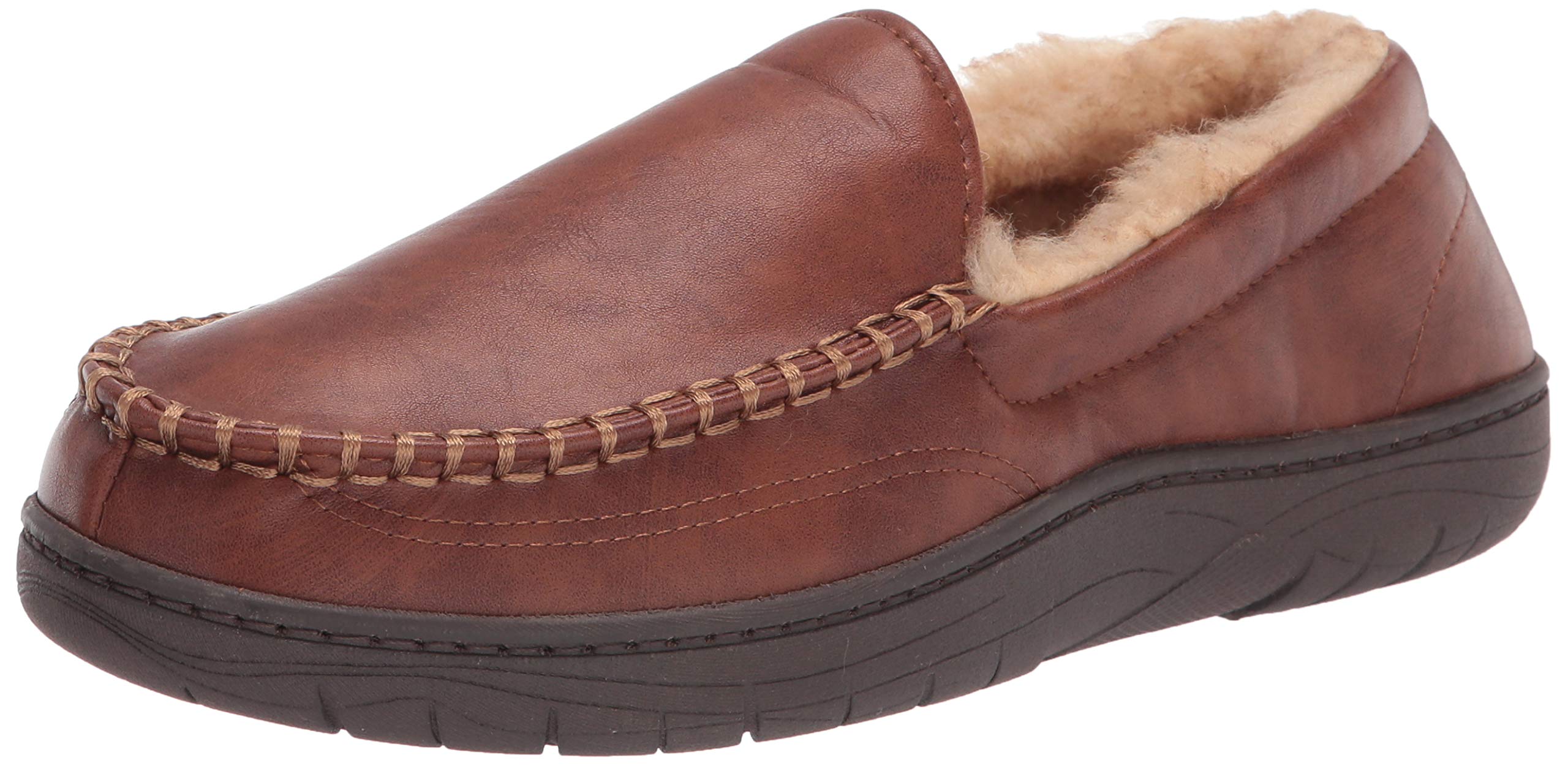 CLASSIC HAGGAR STYLE: When you see the Haggar name, you know you can count on exceptional style, quality, and flexibility. World class comfort and iconic men's style combine to give you this ultra-cozy slipper. Pair with your favorite Haggar pants to complete your work-from-home look. VENETIAN SILHOUETTE: This house shoe is a venetian style, which is very similar to a mocassin slipper. Because it has a closed back along the heel of your foot, this casual slip-on will stay on your feet as you walk and feel more like a shoe than a slipper for added comfort and security. This minimalistic style is classic, effortless, and easy to wear. UNIQUE & COZY TEXTURES: Choose from an exterior look of sleek leather-like material or a soft felt fabrication for this venetian slipper. The inside is padded with warm lining to keep your feet extra cozy. In addition, the sole is made from bouncy memory foam for ultimate long-lasting comfort that forms to your foot. INDOOR/OUTDOOR USE: With a solid sturdy rubber sole, these slip-ons are ideal for both indoor and outdoor use. They are slip-resistant and high quality, which means they will stay secure on your feet no matter where you are going. Drive to the grocery store, walk to the neighbors', or simply stay inside to watch your favorite show in these everyday slippers. COMFORTABLE FIT: Find your snug slipper fit with our easy size guide. Choose from men's standard US shoe sizes M-XXL. Size equivalents are as follows: Medium (8-9), Large (9-10), X-Large (11-12), XX-Large (12-13). Whether you prefer a loose or tight fit, select the perfect pair of Haggar house shoes for your needs.
