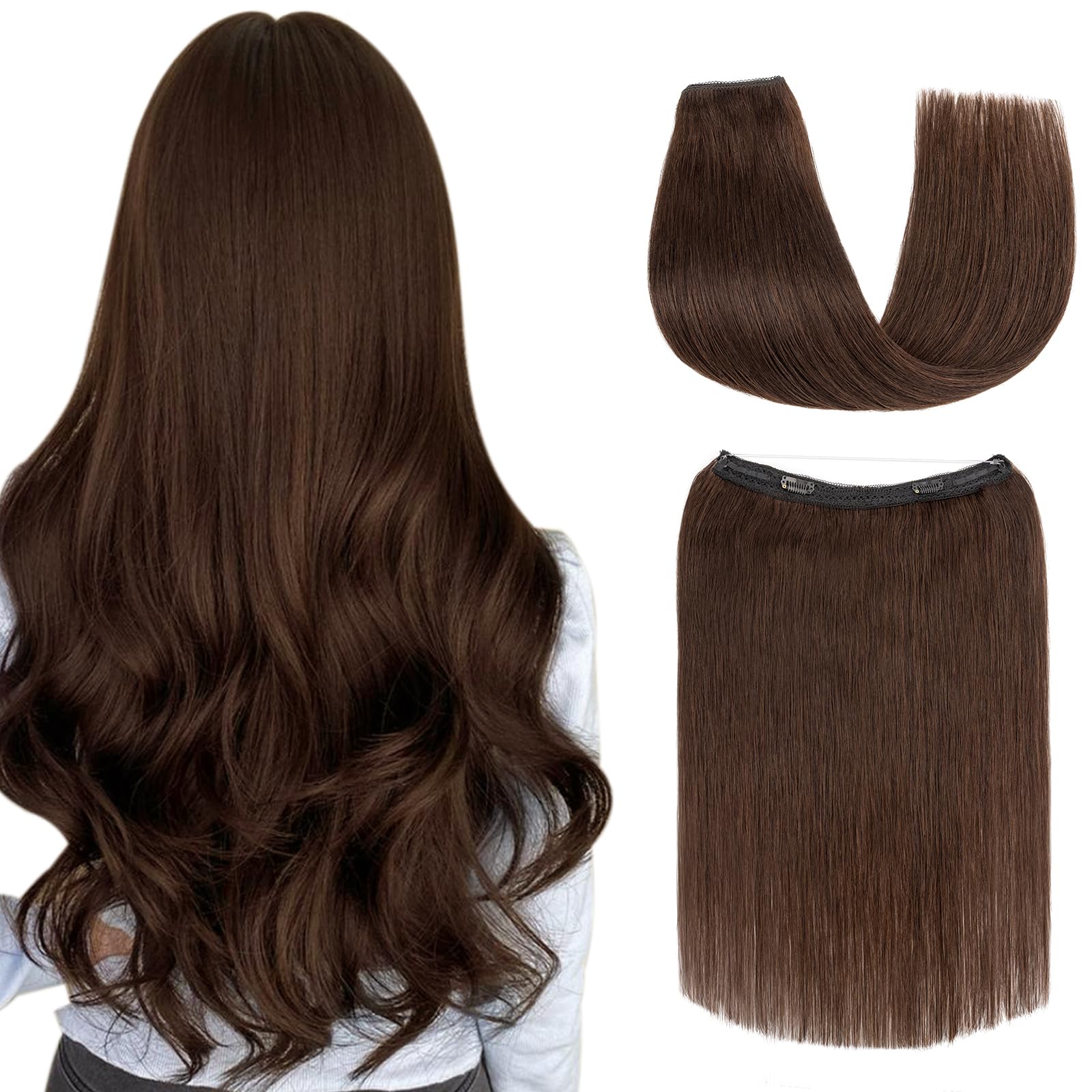 Premium Halo Hair Extensions Human Hair: S-noilite real halo hair extensions are made of 100% remy human hair,without any animal or synthetic hair.Which can be reused,curled,straightened,dyed,and washed. Unlike synthetic extensions,our halo hair extensions real human hair are soft,smooth,and tangle-resistant, providing long-lasting beauty with proper care Upgraded design: S-noilite halo hair extension real human hair features an upgraded lace hair net for a lightweight,breathable experience.The adjustable fishing line and flexible hooks can be easily customized to fit your head size, guaranteeing safety and comfort throughout the day.No one will discover your secret,go in and enjoy the transformation that halo hair extensions bring to you Easy Application and Removal: Our Halo hair extensions human hair achieve your desired volume and length in just 1 minute.These wire hair extensions blend seamlessly with your natural hair,creating a natural and fluffy effect.Human hair halo extensions are easy to apply and remove,the invisible transparent wire and clips on the lace weft ensure a secure hold,even when you shake your head Human Hair Care Tips: To maintain the smoothness and longevity of your human hair halo extensions, we recommend using a wide comb to gently comb them and cleaning with warm water and a gentle shampoo and conditioner.After washing, wrap the extensions in a towel to remove excess water, and air drying is the best way to keep them healthy and durable What You Will Receive:When you purchase our human hair halo extensions,you will receive a set of human hair halo extensions,a replacement fish line,two replacement clips,and a sewing kit for any necessary adjustments