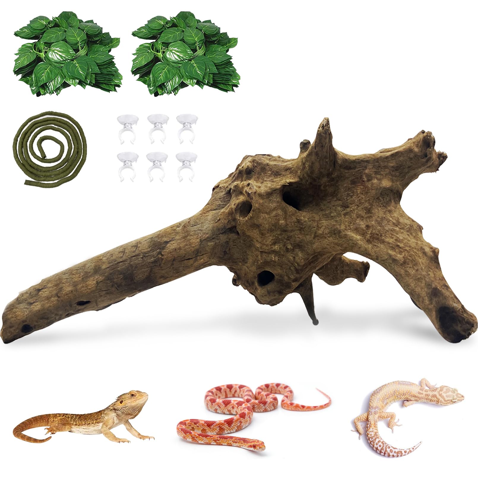 The terrarium wood ranges in size from 11 inches to 16 inches and fits reptile crates of 20 gallons or more. This size provides enough space for reptiles to move around, allowing them to climb and explore freely, enhancing vitality and health.