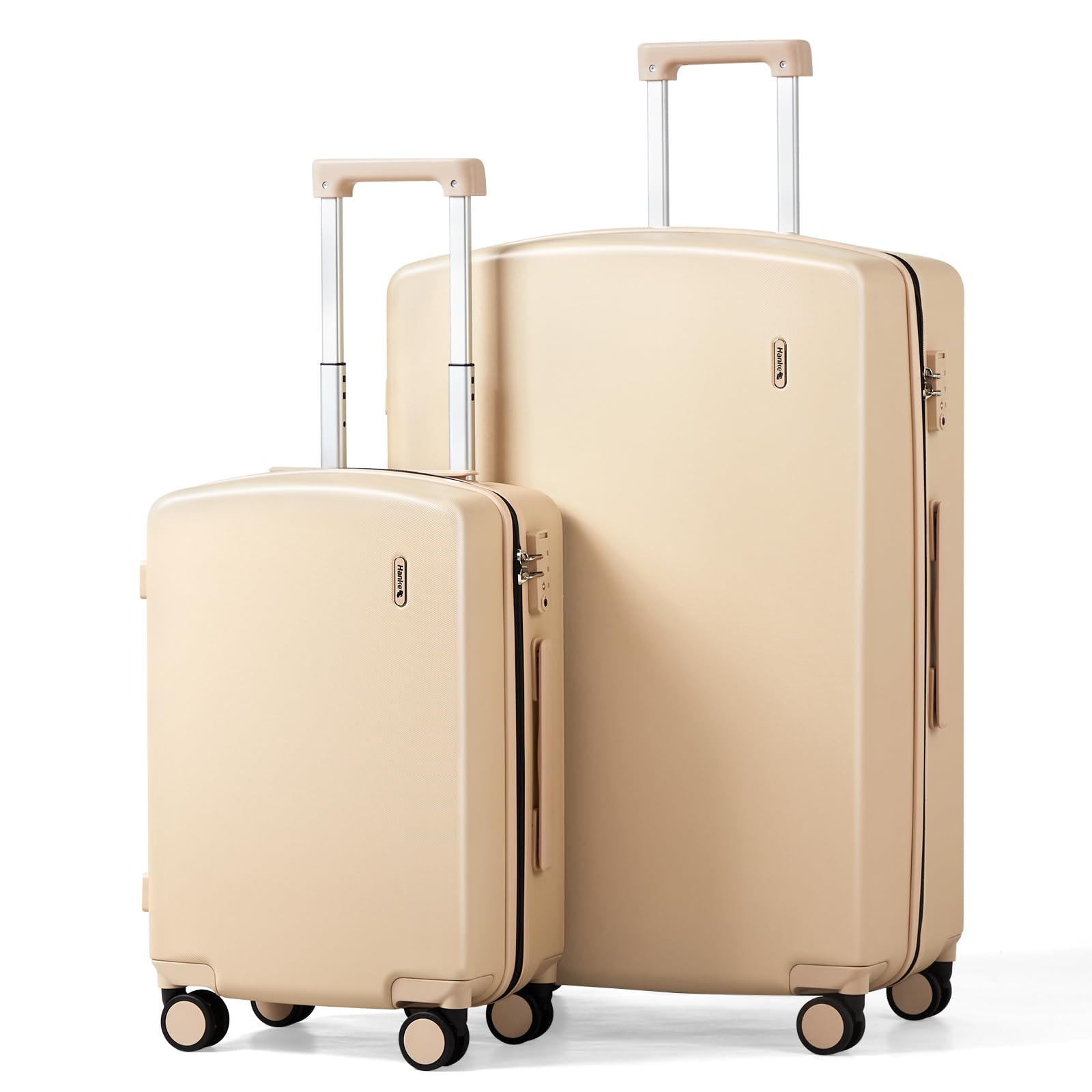 【Luggage Set 2 Piece 20/28 Inch 】20 Inch carry on luggage L13.5'' × W8.9'' × H21.3'', Weight: 6.4 LB, Capacity: 36L, fits overhead bins; 28 Inch extra large luggage L19.7'' × W11.4'' × H30.3'' (includes wheels and top handle), Weight: 11 LB, Capacity: 103L. 28 Inch suitcase needs to be checked. 【Superior Maneuvering】Hardshell luggage sets with a sturdy aluminum alloy retractable handle that offers multiple height positions in use and allow you to quickly maneuver anywhere. This travel luggage equipped with 360° spinner wheels to ensure a smooth glide. Soft Rubber top grip handle and side carry handle for stable lifting. 【Exquisite Craftsmanship & High-Grade Accessories】Hanke hardside carry on luggage feature with brand zipper that is smooth and durable than general zipper in market, and using 5 strands to protect zipper teeth to prevent from tearing. International combination lock to ensure the safety of your valuables. 【Lightweight Yet Durable】This hard shell suitcases is made of premium Covestro polycarbonate(PC) which is extremely lightweight yet durable. And the hard case luggage is fine grain texture, not easy to scratch, keeping your suitcase beautiful trip after trip. 【Spacious Interior】The checked luggage makes packing clothes easy with the fully lined interior. Enclosed zipper compartment can protect privacy better, Individual built-in toiletry pocket and mesh pocket helps to storage some small items, ONE main compartment with cross ribbon to secure your clothes in place. This Hanke hard shell suitcases are available in 16 inch,20 inch, 24 inch, 28 inch. The 16 inch carry on luggage fits under seat or overhead bins and you can place this small suitcase in front of you. The 20-inch carry-on will fit in overhead bins for both international (21.5 x 15.5 x 9) and domestic (no larger than 22 x 14 x 9 inches) flights. The 24 inch medium luggage and 28 inch extra large luggage that need to check in. All of them have a hardcover, which is ideal for rough handling and protecting the contents of the luggage. It has a International universal combination lock, making your life easier in airports. The luggage is of excellent quality with spinner wheels.