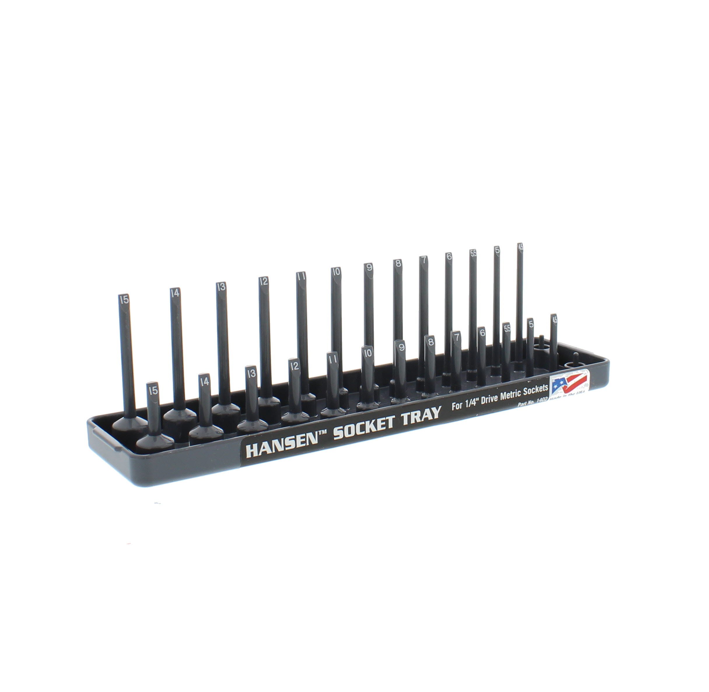 Drive, regular, deep well Sizes range from 4MM to 15MM Sizes are marked on posts for easy instant identification Edge tangs for easy handling Post bases are beefed-up to hold sockets more securely