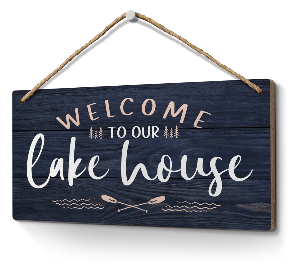 Lake House Decor:Rustic cottage sign reads “Welcome to Our Lake House ”.Perfect decorations for lake home, cabin cottage lake fife office. Cute Gifts: This lake life decor sign is a great choice for yourself or makes a cute housewarming gift for friend who has a green thumb and like to spend time at lake Material:Heuhuww signs are made from solid MDF wood fiberboard with 0.25 inch thickness,HD UV printed,durable and lasting hold Easy Display:Each sign has 2 pre-cut hanging holes and a length of twine.Constructed to hang on wall hooks, front door,or sit on your favorite shelf Size: 6 x 12 x 0.25 inches Heuhuww Decorative Fun Universal Household Signs for Every Occasion