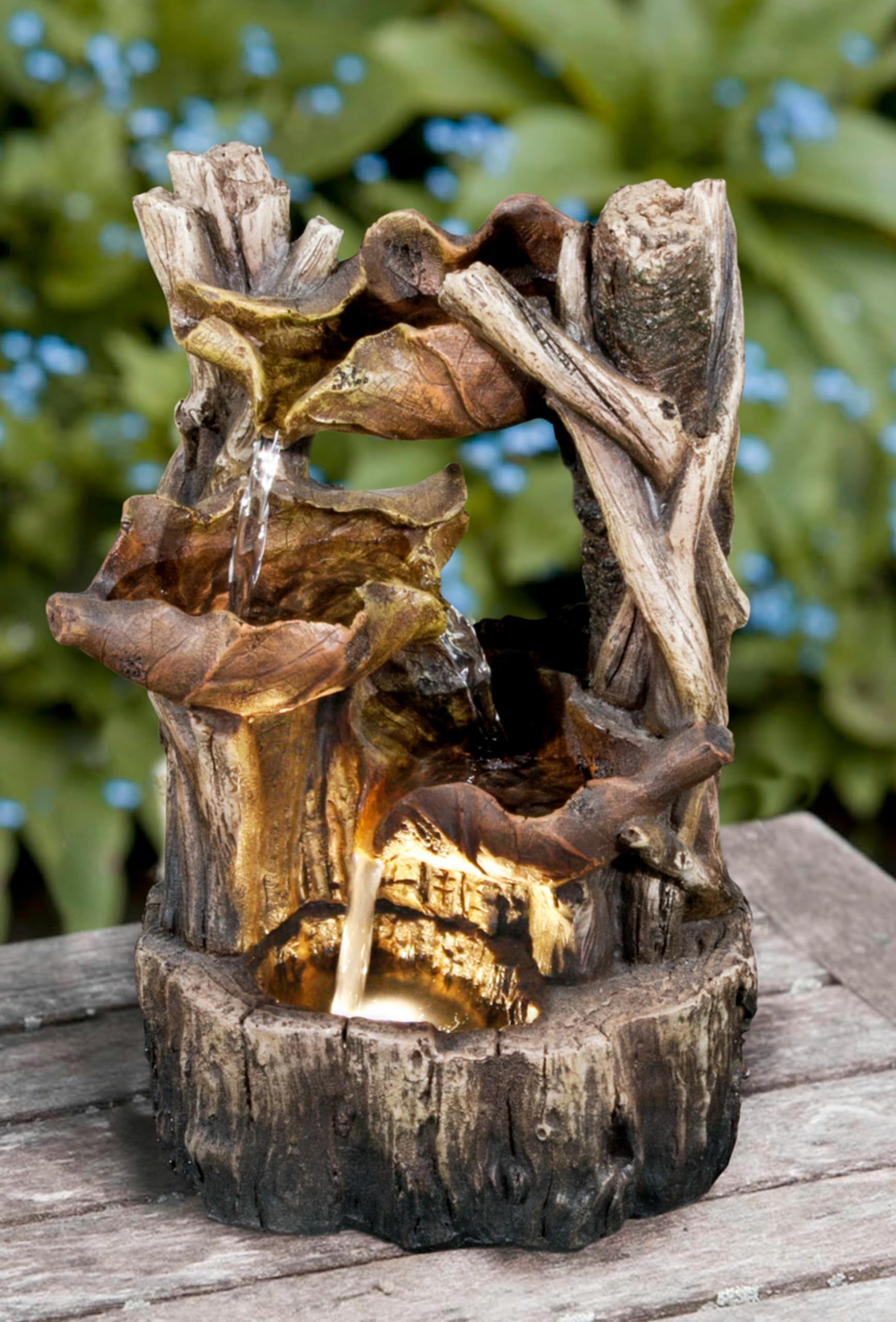 Hi-Line Gift Ltd 79555-C Fountain-Tree Trunk with 3 Leaves and LED Lights, Multicolor