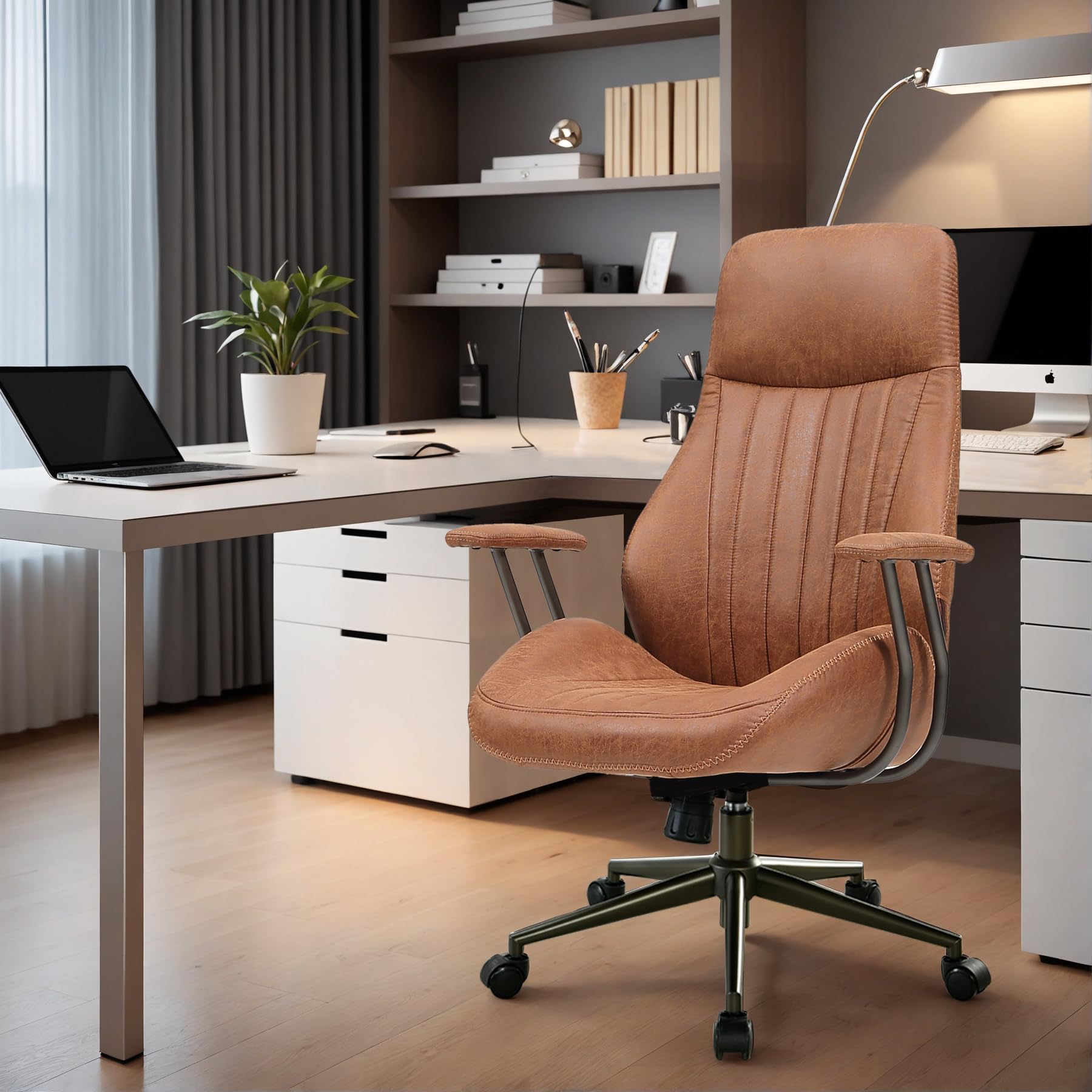 Ergonomic Comfort Chairs for Long Hours: Designed for extended use, this high-back chair provides full support for your head, lumbar, hips, and arms. The thickened cushioning ensures all-day comfort, whether you're working, studying, or gaming. With adjustable height and padded armrests, this comfortable office chair is ideal for professionals and home office users, offering ergonomic support to reduce back strain Stylish Mid-Century Modern Office Chair Design: Upgrade your workspace with the Ergonomic Home Office Chair, featuring a sleek mid-century modern (MCM) design. The rich black PU leather or soft suede fabric upholstery adds a touch of elegance, making it a perfect fit for home offices, gaming setups, or modern workspaces. Its vintage office chair aesthetic and decorative office chair appeal blend seamlessly with any decor Durable and Easy-to-Clean Materials: Crafted from premium PU leather or durable suede fabric, this chair is waterproof, breathable, and scratch-resistant. Perfect for daily use, it’s easy to clean and maintains its luxurious look, even in homes with pets or children. The black leather office chair finish adds a luxury office chair feel, while the sturdy metal base ensures long-lasting durability Heavy-Duty Construction with 300 lbs Capacity: Built to last, the home office chair features a robust metal base and a heavy-duty gas lift, supporting up to 300 lbs. The 5-star base and silent, scratch-proof casters provide stability and smooth mobility, making it a reliable choice for big and tall users. Its executive chair build quality ensures it stands out in both home office and corporate settings Customizable Comfort for Every Need: Enjoy personalized comfort with adjustable height settings and a 3-position tilt lock mechanism (92.1°, 106°, 119°). The wide seat design accommodates various sitting positions, while the padded armrests add extra comfort. Whether you need a computer chair, gaming chair, or task chair, this ergonomic office chair adapts to your needs. Easy to assemble in just 15-30 minutes, it’s ready to use right out of the box Transform your workspace with this stunning Mid Century Modern office chair that perfectly balances style and comfort. The high-back design features luxurious tufted cushioning throughout, providing comprehensive support for your head, lumbar region, hips, and arms during long work sessions. Wrapped in sophisticated brown PU leather, this chair offers both waterproof and breathable properties while resisting scratches from daily use. The robust construction supports up to 300 pounds, while the adjustable height and 3-position tilt lock mechanism (92.1°, 106°, 119°) let you customize your seating position for optimal comfort. The sleek chrome base with smooth-rolling casters ensures easy mobility across your office space. Assembly takes just 15-30 minutes, making it a practical choice for your home office. Whether you're working, gaming, or simply relaxing, this executive chair delivers the perfect blend of retro aesthetics and modern functionality.