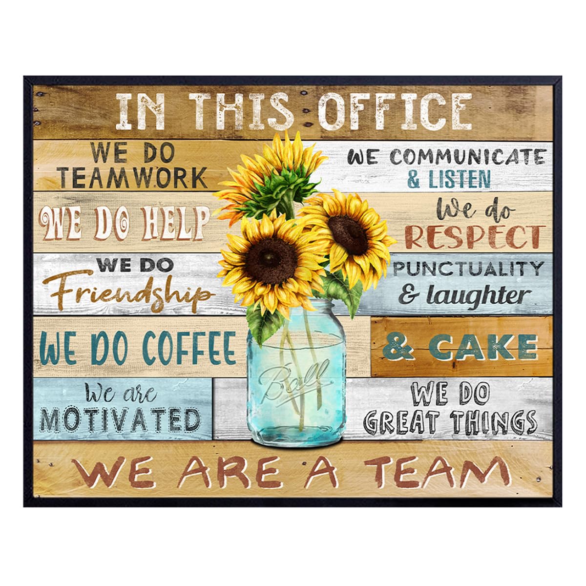 Home Office Wall Art & Decor - Teamwork Wall Art - Encouraging Decor - In This Office We Are A Team Inspirational Saying - Inspiring Positive Quotes