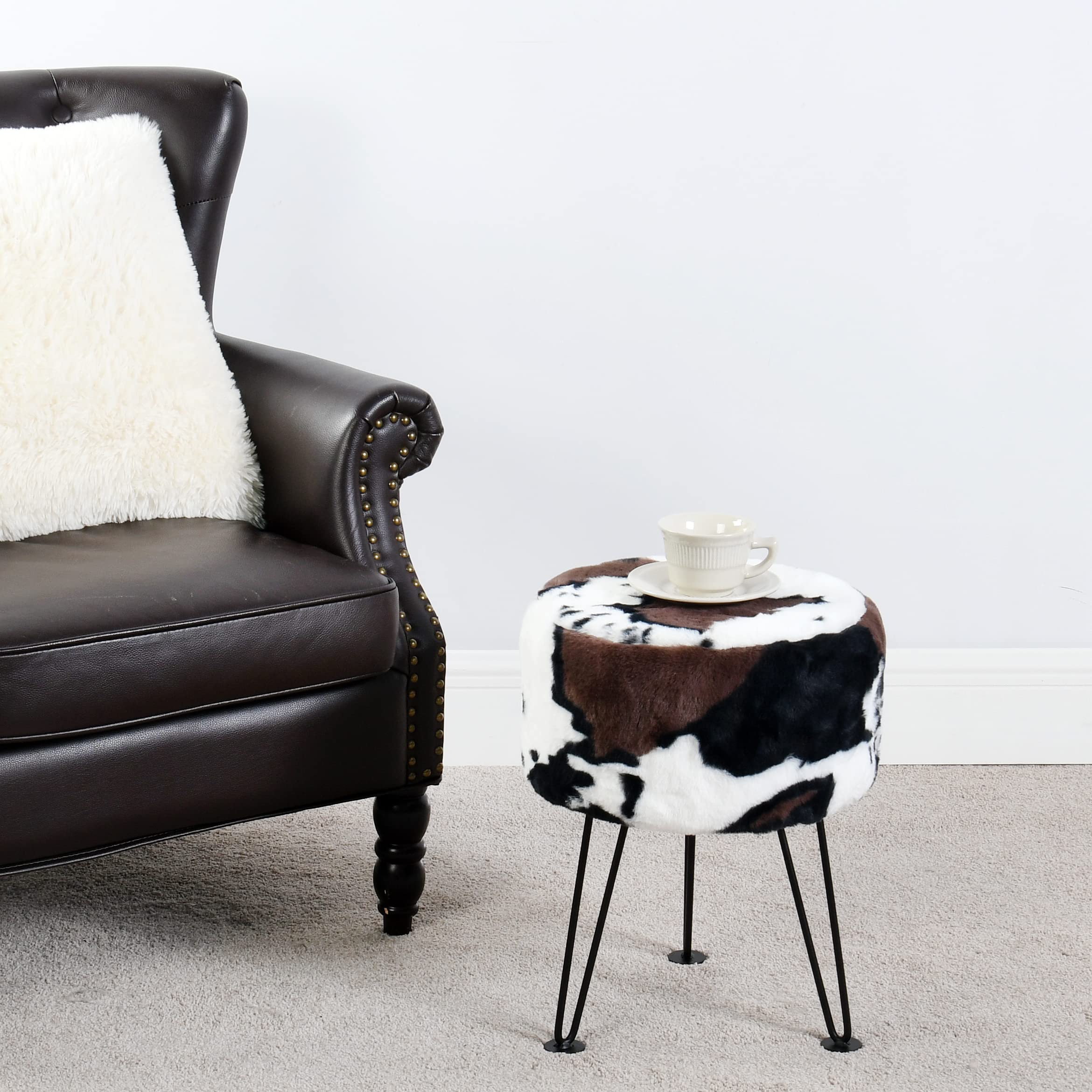 Upholstered Accent: Put your feet up on a faux fur cushion and descend into pure relaxation and comfort, Ottomans are super soft, super practical, and super affordable; Style your home with an attractive upscale ottoman for a touch class Dimension: This cow ottoman measurement is 13 L x 13 W x 17 H inches when assembled and offers a 150-pound capacity; Metal hairpin legs are sturdy and durable to withstand full weight capacity Lovely Gift Idea: Ultra-soft faux fur cushions match Super Mink Faux Fur Throw blankets help create a complete look and makes a lovely gift when given as a set, Every time your loved ones kick their feet up, they will think of you and your thoughtfulness Minor Assembly: Simply screw metal hairpin legs into each corner of the bench , Be prepared with a Phillips screwdriver, Hairpin legs and screws arrive in the hidden zipper compartment under the seat Protect and Care: Spot clean seat cushion cover only on visible stains and spots using mild soap and a clean, soft towel. Metal hairpin legs may be wiped with a clean, damp towel, Foam cushion with a 100% Polyester cover Put your feet up on a super soft faux fur cushion and descend into pure relaxation and comfort. Ottomans are super comfortable, super practical, and super affordable. Style your home with an attractive upscale ottoman for a touch class. These ottoman benches are the perfect accent for living rooms, offices, kids’ rooms, bedrooms, vanity chairs, shoe benches, extra seating, and more! Each ottoman measurements are 13 L x 13 W x 17 H inches when assembled and offers a 150-pound capacity. Metal hairpin legs are sturdy and durable to withstand full weight capacity. Ultra-soft faux super mink cushions match Throw blankets help create a complete look and makes a lovely gift when given as a set. This Cow ottoman is wrapped in a plastic bag then boxed for ultimate protection. Minor assembly required! Simply screw metal hairpin legs into each corner of the bench with the provided screws and your bench is ready to enjoy. Foam cushion with 100% Polyester cover. Spot clean seat cushion cover only on visible stains and spots using mild soap and a clean, soft towel. Metal hairpin legs may be wiped with a clean, damp towel.