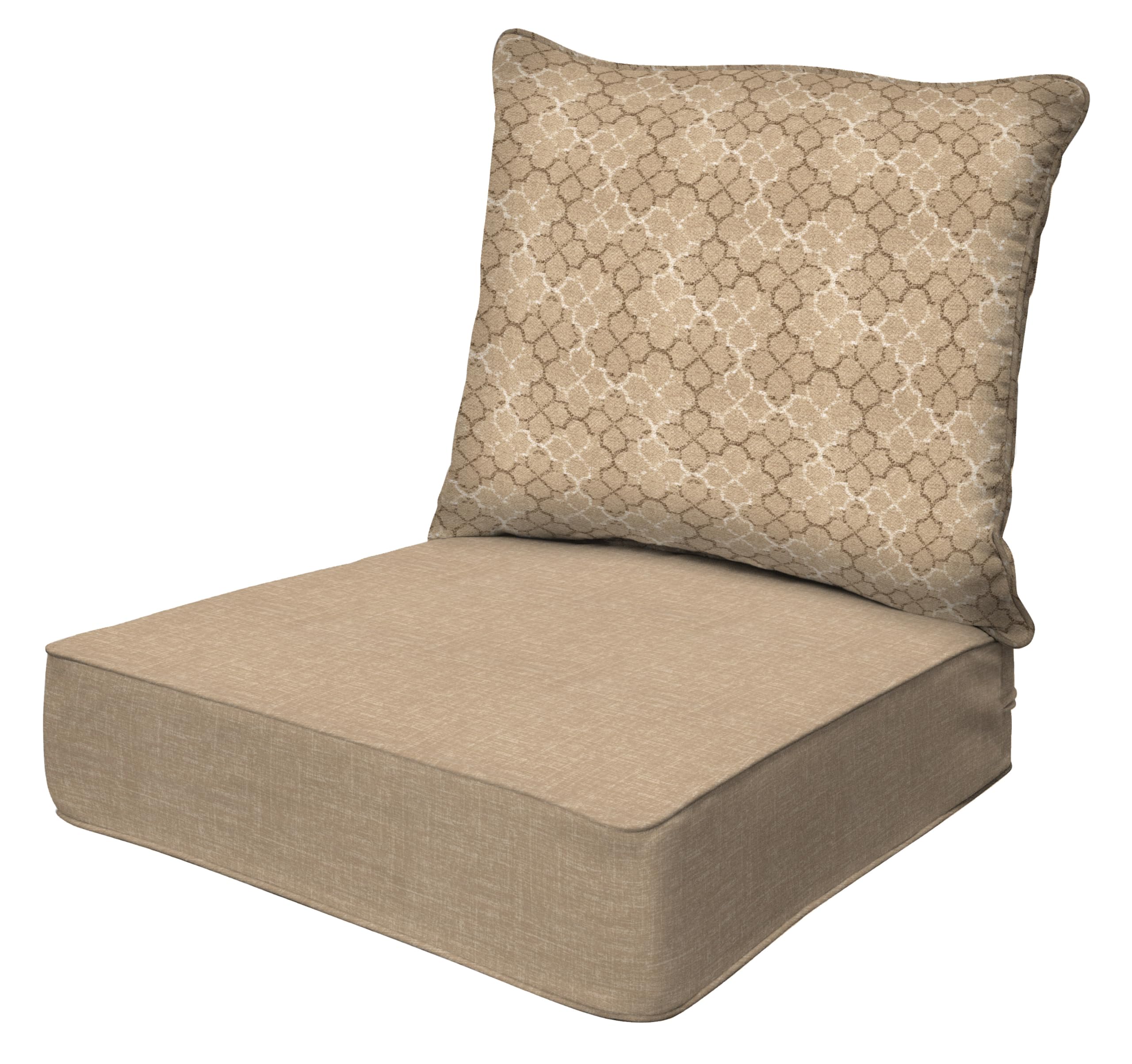 Classic Design - Elevate your outdoor furniture in quality and style at a price that fits your budget. Honeycomb Essential cushions are a curated selection of our classic styles paired with fresh patterns designed to complement any space. Superior Support – Designed to fit most outdoor lounge chairs, loveseats, and sofas. Featuring a generous pillow back and a seat made of plush foam, our deep seating cushion offers optimal support, guaranteeing long-lasting comfort. Weatherproof – Outdoor patio cushion that can handle the elements while remaining bright for years. Crafted with durable outdoor fabric, it is UV- and water resistant, so you never have to worry about fading or stains. Effortless Care – Keep your outdoor living space looking guest-ready all season long with our low-maintenance outdoor cushions. Easily spot clean using a rag, soap, and warm water. Hang cushion and let air dry for best results. Environmentally Friendly – Take a greener approach to your poolside, patio furniture, deck and home decor. Each deep seating pillow back contains fiberfill made from 43 recycled plastic bottles. Honeycomb Essential cushions for patio furniture offer a perfect blend of style, quality, and value. Simplified yet chic, these cushions provide the comfort and durability you love—at a price that fits your budget. The deep seating cushion set measures 24" wide x 23" deep x 6.5" thickness and the back cushion measures 27" wide x 23" tall. Set features a generous pillow back and plush seat cushion for lasting comfort and support. Designed to fit most standard outdoor deep seating patio chairs, these cushions can endure the elements from season to season.