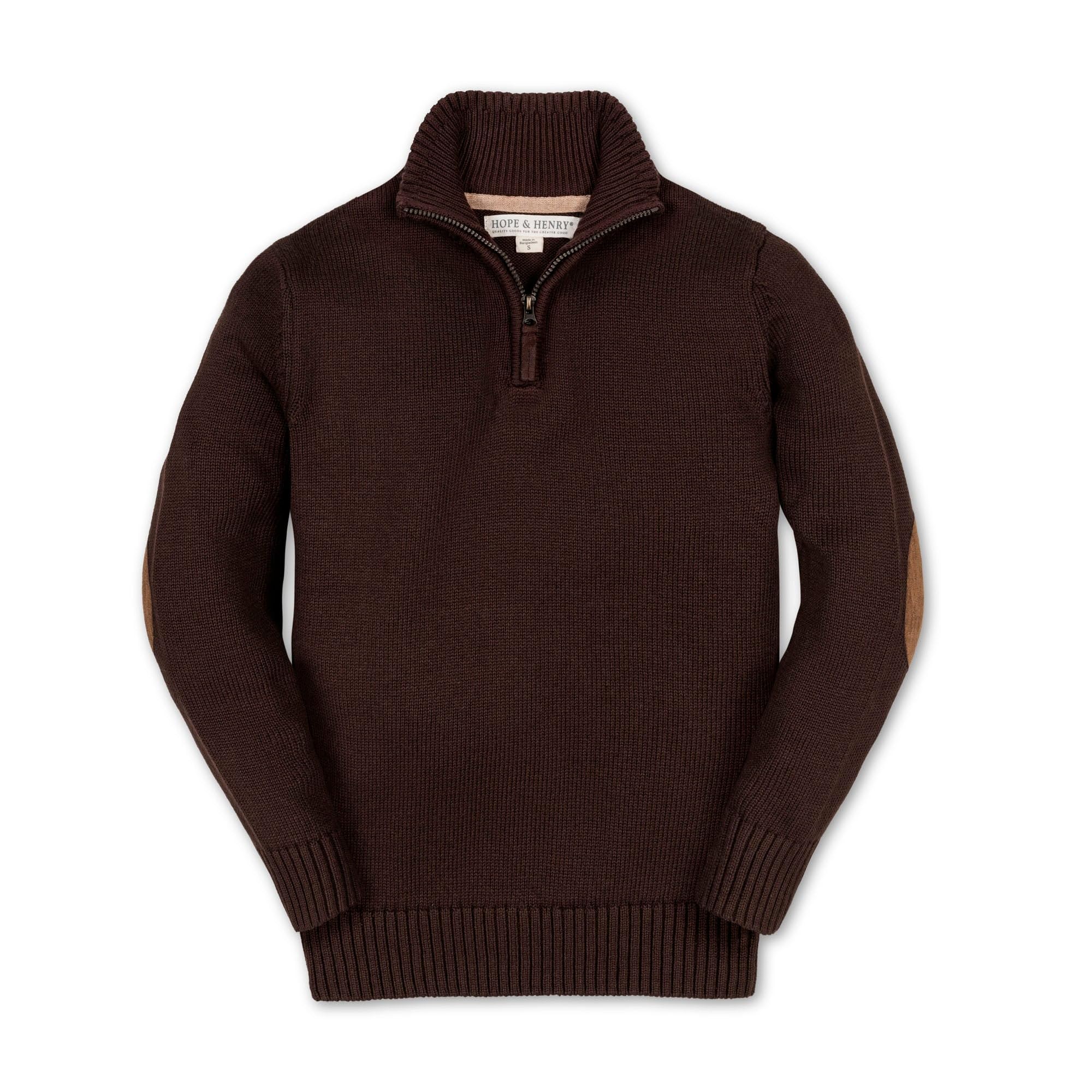 100% GOTS-Certified Organic Cotton: Made from sustainably grown, 100% organic cotton (exclusive of trims), ensuring a soft, eco-friendly sweater that's gentle on your child’s skin and meets the highest environmental standards. Comfortable & Versatile Design: This sweater features a rib knit mock neck, a convenient front half zip closure for easy on and off, and a cozy, breathable fit that’s perfect for layering or wearing on its own during cooler weather. Stylish Faux Suede Elbow Patches: Accentuated with faux suede elbow patches, this sweater adds a touch of sophistication and durability, making it ideal for both school days and casual family outings. Machine Washable for Easy Care: Designed for busy families, this machine washable sweater retains its softness, shape, and color wash after wash, making it an easy-care option for everyday wear. Ethically Made by Hope & Henry: Thoughtfully crafted by Hope & Henry, an American brand committed to producing high-quality, affordable clothing that’s kind to both your child and the planet. Fashionable, eco-friendly, and built to last. This soft sweater will be a classic cool weather wardrobe staple for your guy. Features a rib knit mock neck, front half zip for easy-on and easy-off, faux suede elbow patches, and our signature super cozy 100% organic cotton yarn.