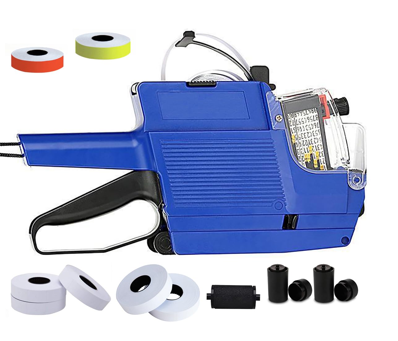1、【Great Labeler Kit】:The price tagging gun kit includes: 1 price labeling gun; 5 rolls or 2800 blank white pricing labels; 3 ink rolls; 1 instruction manual.TIPS: When Using It For The First Time, Please Print a Few More Labels To Make The Ink In The Inker More Even. Due To The Large Changes In Weather Temperature That May Occur During Transportation, The Uniformity Of Printing Will Occasionally Be Affected. However, After Printing a Few Times, The Inker Will Still Print More And More Evenly. 2、【Symbols for Code and Price】:This manual price tag machine can print up to 20 alpha-numeric characters on two lines.You can print a short description,name,slogan or tip on the top line,meanwhile,print a price on the bottom line.This 2 lines sticker gun is perfect for business,company or institution that need letters for codes,brief introductions,product and batch codes,identifiers or special stamps.WARM REMINDER: Before Use, Please Read The Instruction Manual To Make Your Use Smoother. 3、【Easy to Use】:The operation of this money tag gun is very easy.It is very simple to change the numbers and symbols by rotating the dial shaft on the labeler machine. The stickers work well, the printing is clear and even. Just dialling in the characters or prices you want to assign the object, squeezing and releasing the trigger, rubbing the label wheel of the gun against the item need to be priced with an up and down motion, then the price sticker will affix to the item firmly. 4、【Multi Purpose】:It is able to print prices,dates, batch codes, product codes,identifiers or time stamps with different number and symbols, including 0-9,$, RS,RP,EA,kg,set,pkt,blank character and etc. Ideal label tag gun for restaurants,retail,food,inventory.The sticker machine is very suitable for home office or business use, could be used in many different industries, including sales, marketing, advertising, logistics and warehousing. 5、【Warm Tips】:PLEASE NOTE that after selecting all the characters, first be sure to push the dial shaft back into place before operating, otherwise it may cause damage to the machine. 1、The price gun kit includes: