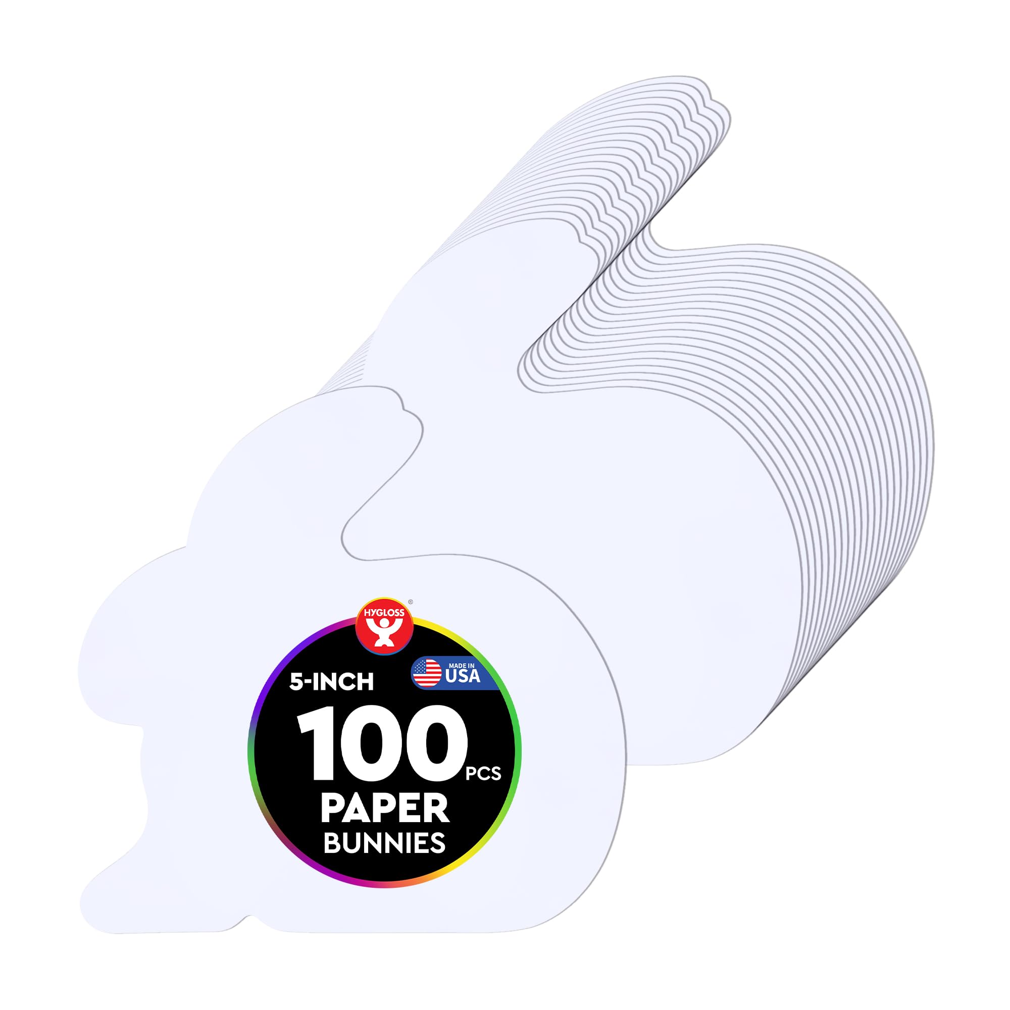Paper HIGH-QUALITY BUNNY CUT-OUT - Made from premium quality paper in assorted vibrant colors, these bunny cut-outs offer endless possibilities to enhance your classroom, home, office & more! Each cut-out comes pre-cut & measures 5” wide with 100 bunny shapes in each pack. Convenient, easy to use, & a perfect finishing touch! A VARIETY OF FUN USES - A fun bunny shape that can be used in a multitude of ways: Easter activities, snazzy bulletin boards, displays, doors, educational projects, parties, signs, home decor, you name it! CREATIVE OPTIONS ARE ENDLESS – Craft time has just gotten exciting! This variety pack of bunny cut-outs gives you plenty of options to unleash your inventiveness. Decorate these quality acid-free paper shapes with paints, markers, colored pencils, glue, glitter & more! ENHANCE EASTER FUN - These festive paper bunnies are perfect for Easter crafts or customizing your own Easter notes or cards. They are also great for kids to personalize as their own locker or cubby tag. These bunnies are an ideal way to encourage children's creativity & skills to soar! MADE IN THE USA - Hygloss Products Bunny Shape Cut-Outs are proudly made in the USA. We want you to have items of good quality at a good price. If for any reason you are unsatisfied, we’ll make it right for you!