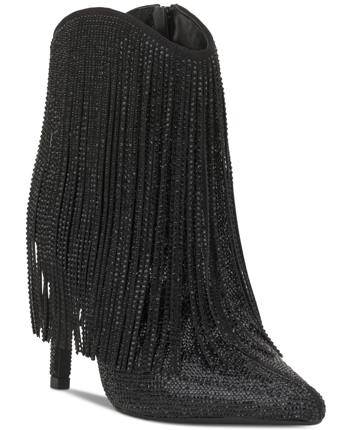 Pairing long tassel fringe and sparkling rhinestones with sleek stiletto heels, the I.n.c. International Concepts Sahoj booties blend western attitude with city-chic appeal.