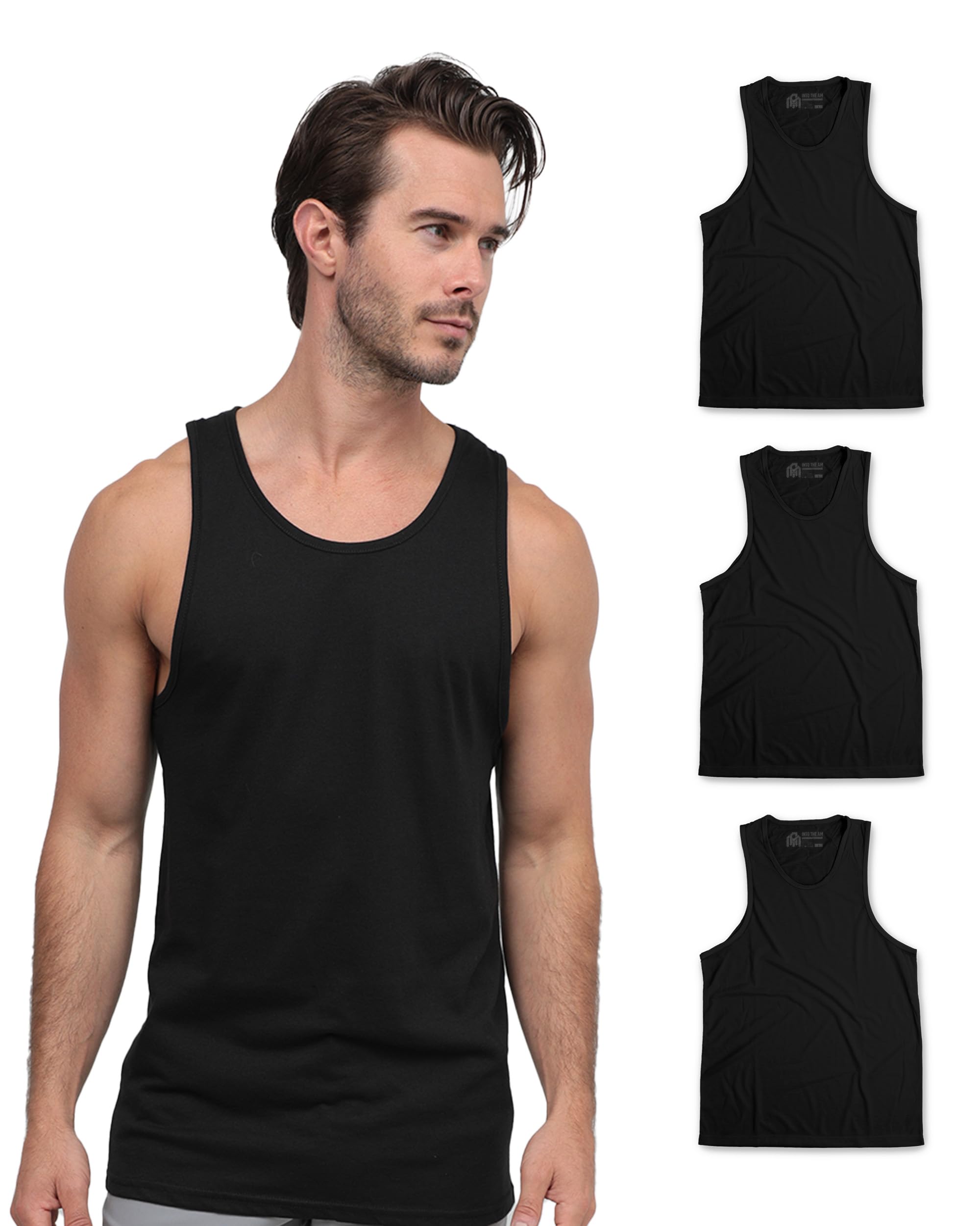 INTO THE AM Basic Tank Tops for Men - Minimal Plain Tanks for Beach Exercise Casual Wear S - 2XL