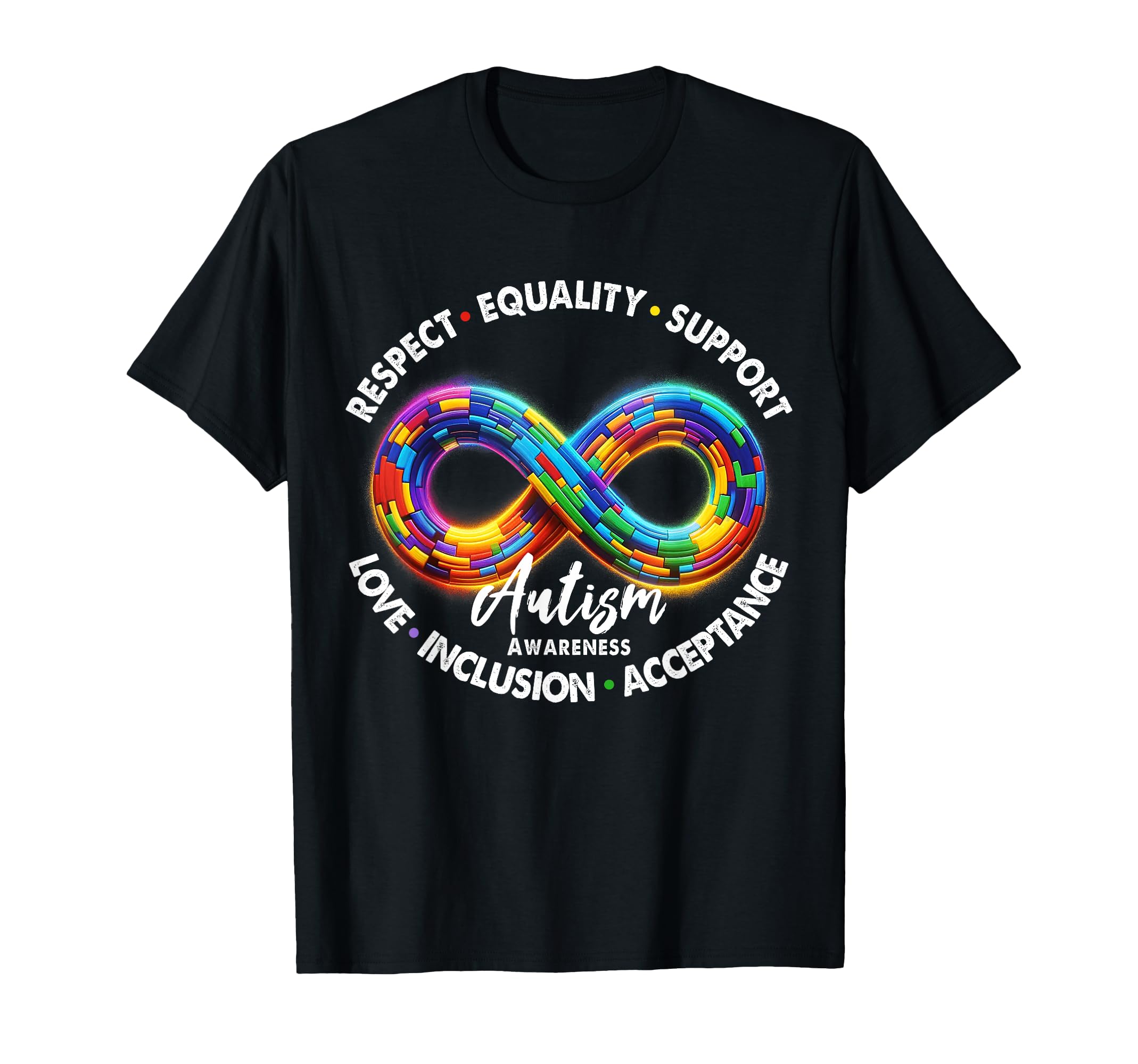 Autism Awareness Support design. Wear this inspirational Autism Rainbow Infinity Symbol graphic on Autism Awareness Month in April if you're a supportive and loving grandma of an autistic child. Respect Equality Support Love Inclusion Acceptance Show support for Autism heroes with this graphic design featuring colorful infinity symbol puzzle pieces autism grandmother give it as the perfect autism Birthday Present and show your love and support for acceptance and help raise awareness Lightweight, Classic fit, Double-needle sleeve and bottom hem