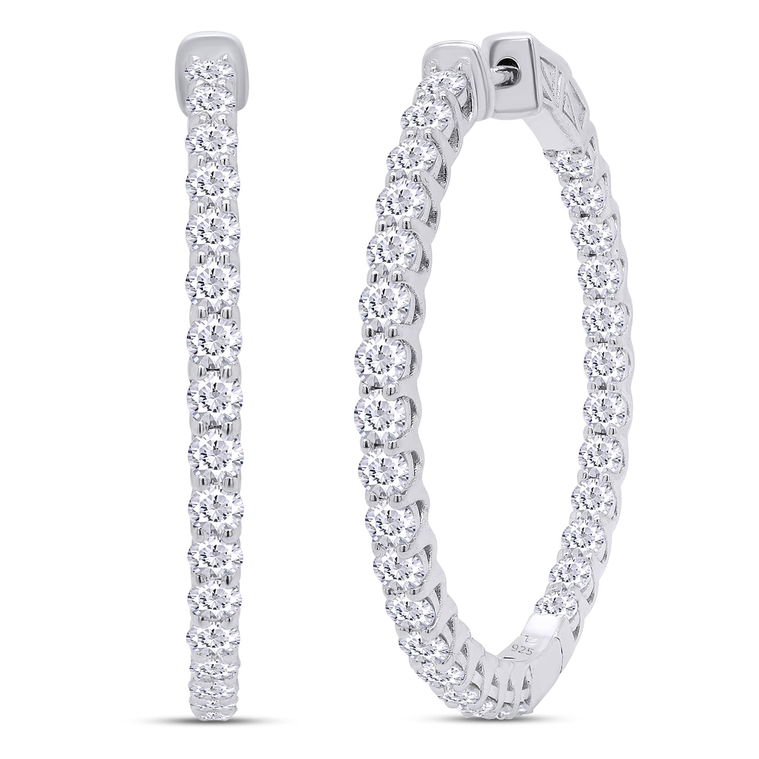 These elegant inside out hoop earrings for women feature round lab created moissanite or lab grown diamonds set along both the outer and inner curves, offering maximum brilliance from every angle. A timeless jewelry design that adds sparkle and sophistication to any outfit, these gold plated hoops make a stylish statement for weddings, parties, or everyday wear. Classic and modern, they’re perfect for women who love bold yet versatile fine jewelry. Whether worn as bridal jewelry, anniversary earrings, or part of your everyday look, these versatile hoops adapt to any occasion. The round cut lab stones match both modern and vintage styles. Ideal for curated ear stacks, solo statement wear, or pairing with necklaces and bracelets. A popular choice in moissanite earrings and lab grown diamond jewelry, they elevate any wardrobe with effortless luxury and shine. Moissanite Details : Round Cut Lab Created Moissanite Having Clarity Of VVS1, Setting : Prongs Setting Type, Total Carat Weight : 3 Carat (Cttw), Crafted in 14K White Gold Plated 925 Sterling Silver, Stamped with 925, these earrings secure with Hidden snap posts to ensure secure grip on ear lob & Comfortable to wear. Perfect gift : This Inside Out Hoop Earrings is a gift for any occasion such as birthday gift, valentine's day gift, Mother’s day gift, engagement, promise, holiday Christmas, new year bling, costume, wedding, anniversary, gifts for women, for mom, gifts for mother in law, gifts for wife, gifts for aunt, dainty fine delicate gifts for best friend, grandmother, It also fits for any occasion as daily wearing home and office Great Customer Services : All our huggie hoop earrings for Women arrives with a gift box. If there is something wrong with our product, please just leave us a message, we strive to solve all the problems for you with high satisfaction! [{ONLY GUARD ENHANCER, CENTER RING IS NOT INCLUDED}] Add timeless brilliance and modern elegance to your jewelry collection with these stunning Inside Out Hoop Earrings for Women, crafted in 14K white gold plated 925 sterling silver and set with sparkling round lab created moissanite. Designed to catch the light from every angle, these elegant inside-out hoops feature stones set along both the inner and outer edges—maximizing shine and visibility from every viewpoint. Whether worn solo or paired with other earrings, these gold plated hoop earrings offer an elevated, fashion-forward take on a timeless design. They also make an excellent choice for building a curated ear stack or enhancing a minimalist jewelry look.
