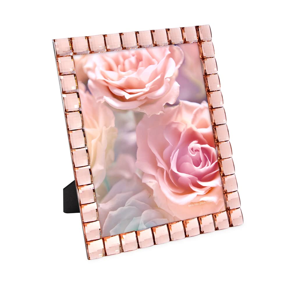 APPEALING LOOK: This shimmering jewel picture frame keeps your snapshots and artwork looking great. Its radiance is sure to put a twinkle in your eyes. This bright picture frame keeps your snapshots and artwork looking great. The ornate detailed photo frame makes a fabulous home for your cherished memories and it is uniquely designed to hold your perfect Kodak moment. Turn your posed portraits, artful prints and favorite milestones into a spectacular display FRAME DESIGN: This glitzy glamorous jewel frame with its radiant stones has a retro-inspired look, and its reflective nature brings sparkle to your photos. It is chic and unique and makes the vibrant colors really add a touch of light to your living room and the perfect amount of glam to your desk GREAT GIFTS FOR: Wedding, Anniversary, Engagement, Baby and Bridal showers, Graduation, Birthday present, Christmas, Valentine’s day, Mother’s Day, House Warming, or any other special occasion. The reflective jewel border around the glass is perfect for friends, family, or a special loved one ORIENTATION: Can be placed in landscape or portrait orientation. Two-way easel for vertical or horizontal display. NOTE: Does NOT hang on wall DIMENSIONS: Fits an 8x10 photo. Overall frame size is 11.9” by 9.9” (inches) This decorative glitzy jewel picture frame brings out the memory in each photo with its extravagant stones. The glamorous dazzling frame lightens up your home or office décor. Can be placed on any flat surface such as your desk, vanity, kitchen counter, coffee table, office desk, night stand and more. Your remarkable photos deserve to be in a very special place! Our picture frames are made to ensure and enhance your most precious memories in a sparkling way. There is no better way to shine the light on your favorite days. Weddings, Engagements etc. BE DAZZLED with this frame. See our frame collection for color options and variety of styles!