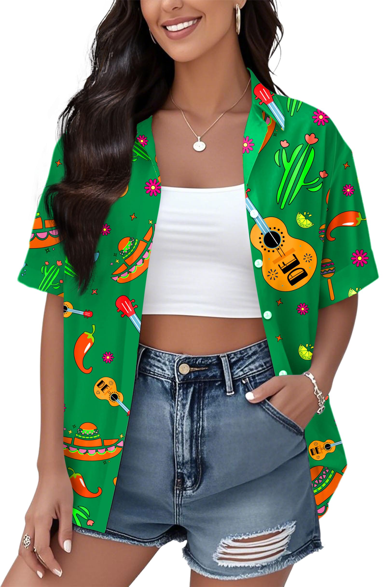 Ithalt Cinco De Mayo Outfit for Women Mexico Mexican Shirt Fiesta Shirts Hawaiian Button down Blouse Top