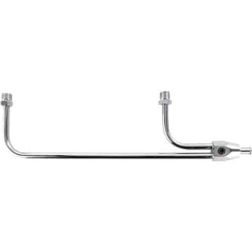 9-5/16” CENTER-TO-CENTER SPACING for carbs with metering blocks on both primary and secondary sides SIMPLIFIES HOOK UP of standard 3/8 “ fuel lines to dual feed carbs TRIPLE CHROME-PLATED for long life and great looks USES 5/8-18 INVERTED FLARE FITTINGS which install into the original bowl fittings OPTIONAL PRESSURE GAUGE can be added to the 1/8 “ NPT port Dual Feed Fuel LineCenter-to-Center Spacing: 9-5/16" Fits Holley square flange, dual feed carburetors with metering blocks on the primary and secondary sides