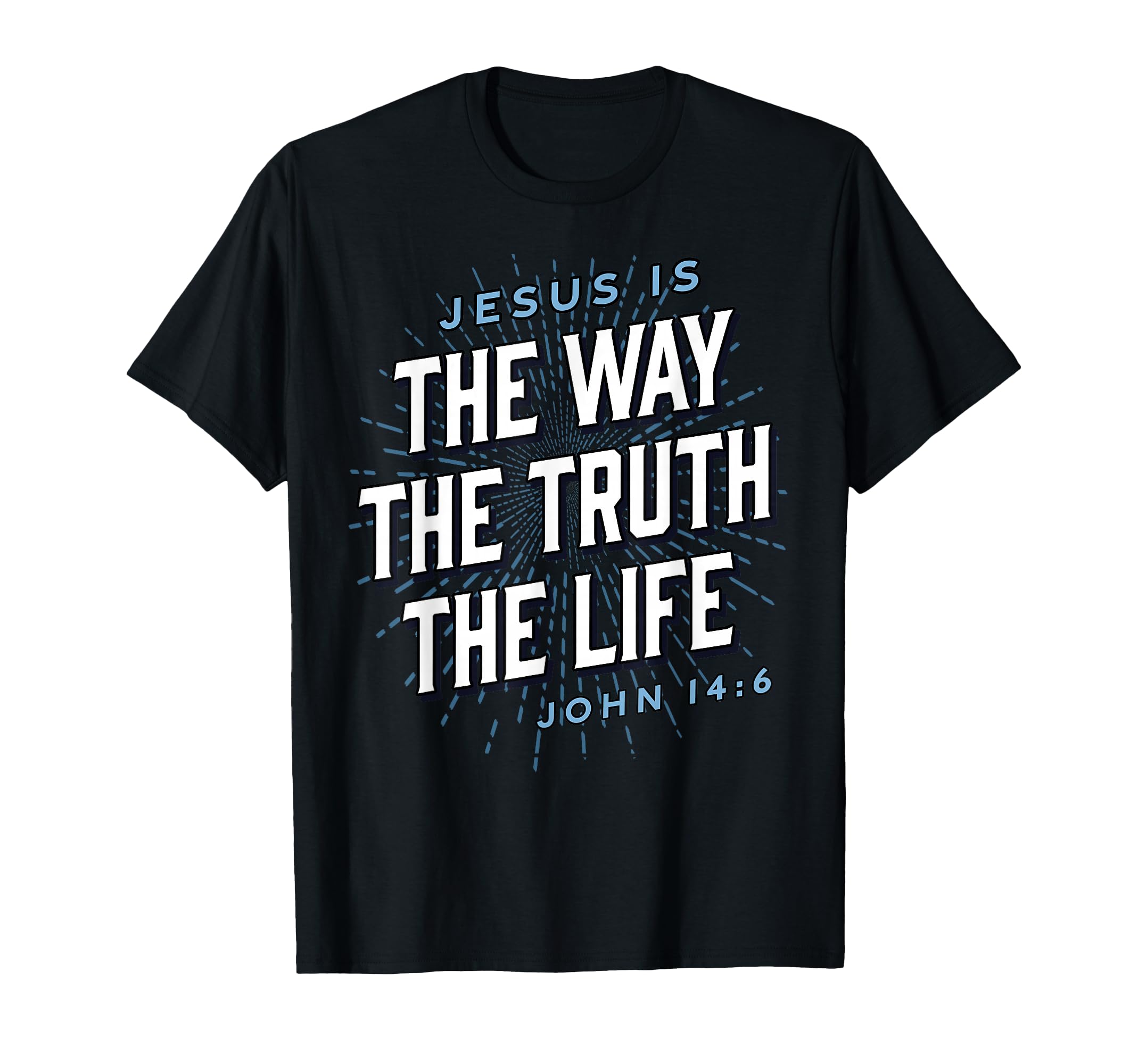 This design is from Bible verse/Jesus quote in John 14:6, “I am the way, and the truth, and the life.” Great for a Christian, follower of Christ, pastor, priest, minister, or religious leader, who wants to share their faith. No matter your theology or church denomination, Baptist, Reformed, Lutheran, Calvinist, or Orthodox Presbyterian, you will love this scripture based text. Makes a fun present for Christmas, Easter, or even Reformation Day. Lightweight, Classic fit, Double-needle sleeve and bottom hem