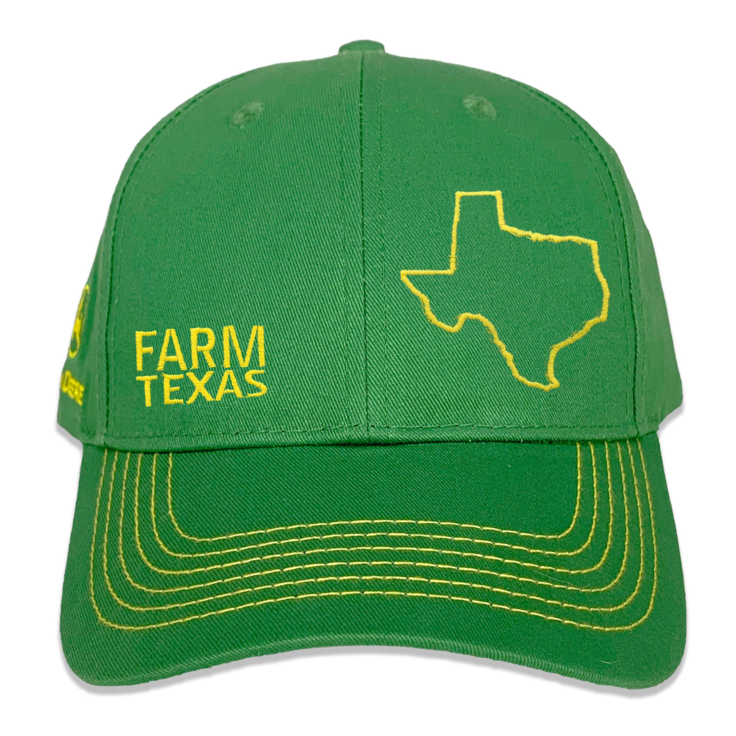 Officially licensed John Deere Full twill style Farm baseball cap in our traditional John Deere tractor colors, green and yellow Makes a great gift for any occasion; Perfect for holidays, birthdays, and more Officially licensed John Deere Full twill style Farm baseball cap in our traditional John Deere tractor colors, green and yellow Officially licensed John Deere Full twill style Farm baseball cap in our traditional John Deere tractor colors, green and yellow Officially licensed John Deere Full twill style Farm baseball cap in our traditional John Deere tractor colors, green and yellow Officially licensed John Deere Full twill style Farm baseball cap in our traditional John Deere tractor colors, green and yellow Officially licensed John Deere Full twill style Farm baseball cap in our traditional John Deere tractor colors, green and yellow. Green with yellow contrast stitching on the bill. Features FARM, your state name, and state outline embroidered on the front of the hat. Keep cool all summer long in this classic John Deere mesh twill cap. The adjustable back strap makes resizing a snap! We carry all 50 states. Embroidered right here in the USA. Makes a great gift for any occasion; Perfect for holidays, birthdays, and more.