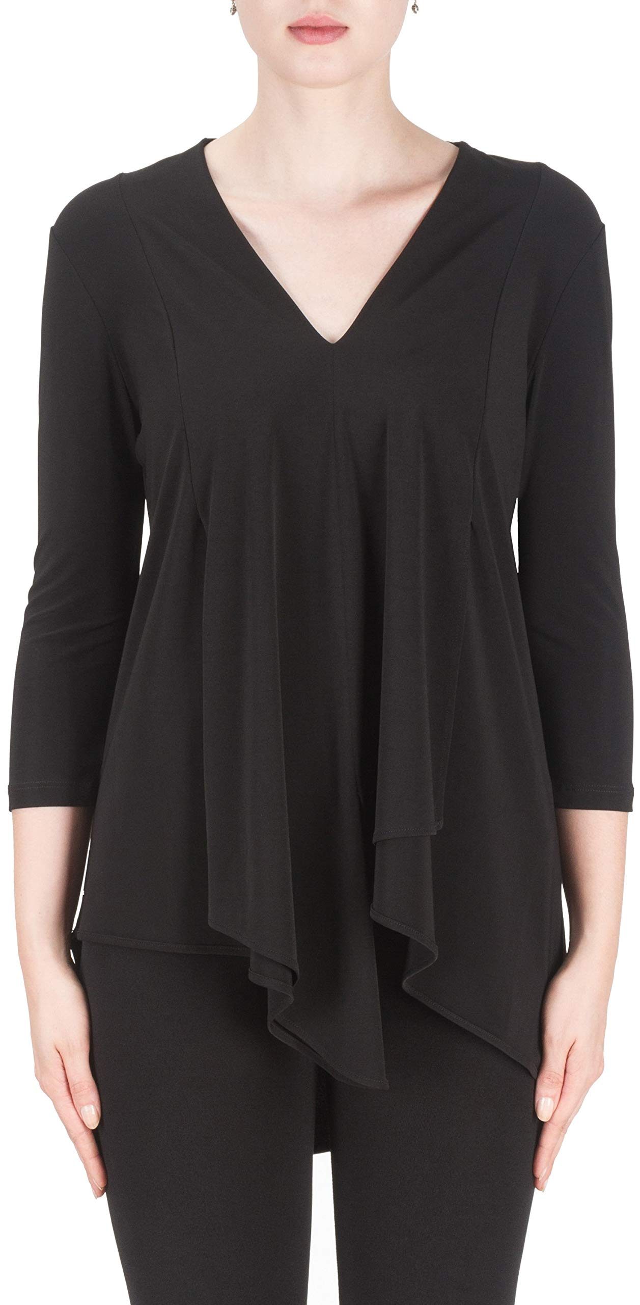 100% Satisfaction Guranteed, Hassle Free Returns The Joseph Ribkoff Womens Asymmetrical 3/4 Tunic, Style 161066J is an essential to your wardrobe! This tunic features a femenine V-neckline, an asymmetric hanky hem (front and back), and a front overlay to provide coverage. This tunic is longer in the back and it is long enough to wear with leggings.