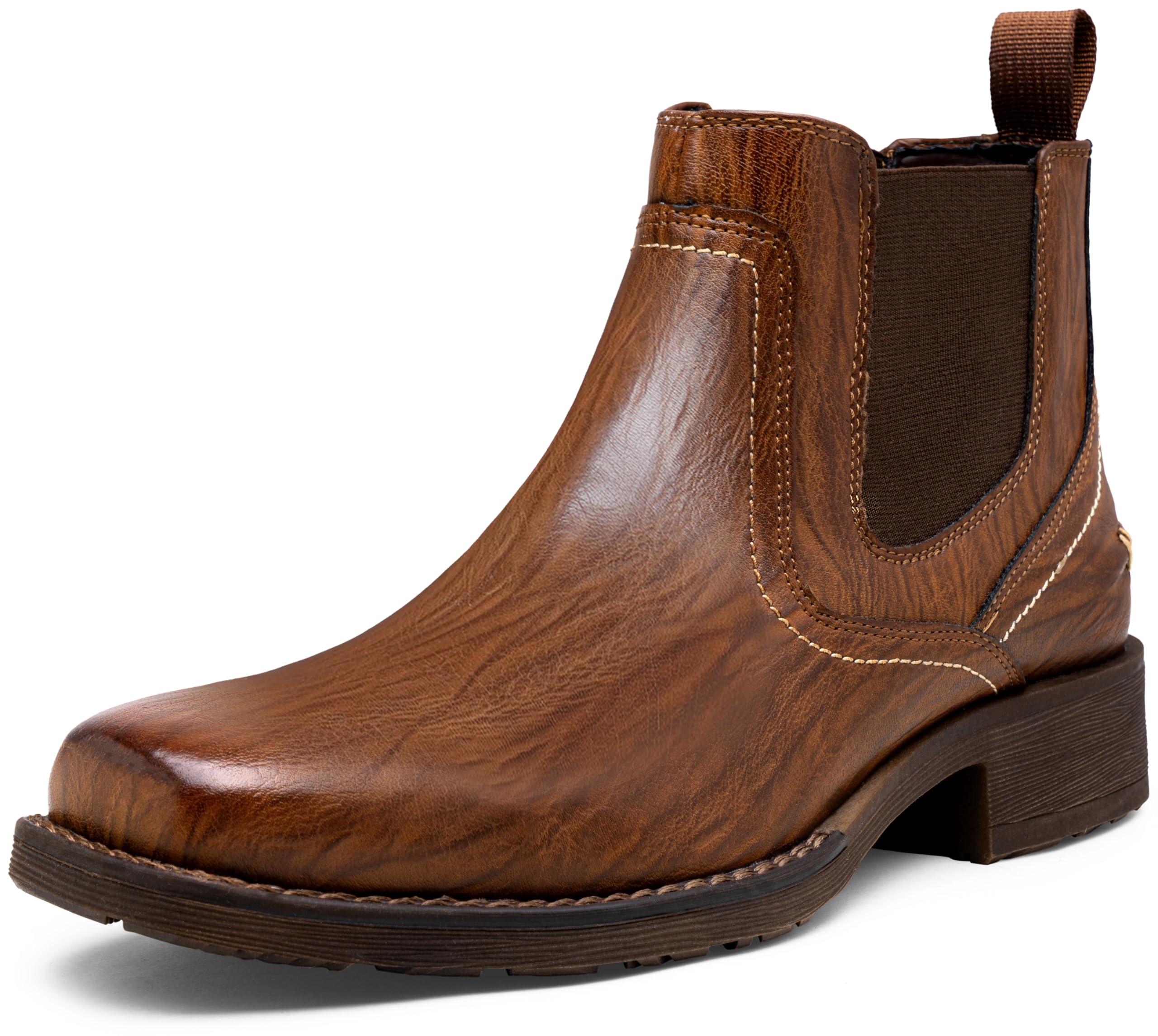 [STYLE]These mens chelsea boots draw inspiration from traditional cowboy boots while modernizing and adapting them for a return to simple, classic style. With a carefully designed shaft height and square toe, the boots retain the iconic style of cowboy boots yet are suitable for everyday wear. [DURABILITY]These mens ankle boots are made from a selection of high-quality wear-resistant synthetic materials to ensure the durability and solidity of the boots. The soles are made from a high strength, hardwearing rubber material and the stitching of the boots is reinforced to provide excellent slip resistance and firmness. [EASY WEAR]These slip on boots for men feature an ankle-high silhouette with a moderate shaft height to avoid the fussiness of traditional tall boots. The double elasticized side panel design on both sides, and the pull-up boot lift at the heel, allow you to easily lift the boots for a comfortable and quick fit. [COMFORT FIT]The lining of these dress boots for men is made of skin-friendly microfiber material, which combines excellent comfort and breathability. The insole is soft and comfortable, ensuring your wearing experience. [VERSATILE STYLE]These brown boots men are not only suitable for traditional cowboy style places, but also for daily commuting, weekend outings and parties. Their classic design pairs well with casual outfits such as jackets and jeans, conveying a casual yet stylish urban cowboy style.