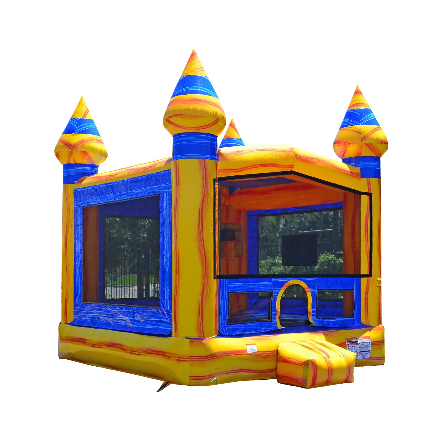 COLORFUL BOUNCE HOUSE: Bring fun to your loved ones and make their childhood playful. A beautiful colorful selection for your kids that can be used for any occasion like a birthday party, family gatherings, wedding, celebration, and more. A moonwalk bouncer that can be used either indoors or outdoors creating unforgettable memories with your beloved ones. SPACIOUS BOUNCER DESIGN: Measuring 13’x13’x16’ the bounce house offers a spacious jumping area for both kids and adults, with a built-in basketball hoop for instant jumping fun and joy. DURABLE AND STRONG: Our inflatable bounce house is crafted from high quality commercial grade PVC vinyl, ensuring longevity, tear strength and minimal maintenance, and easier to clean than traditional nylon. SAFE DESIGN FOR KIDS: Our bounce house is designed with a focus on your children’s safety, ensuring a worry-free play experience. Equipped with large mesh windows for optimal airflow and visibility to easily supervise your kids. Protective rooftop provide shade from the sun and an emergency exit. COMPLETE SET: Includes everything you need to get bouncing, including an air blower, stakes, repair patches, and dust bag, ensuring a hassle-free setup for any occasion.