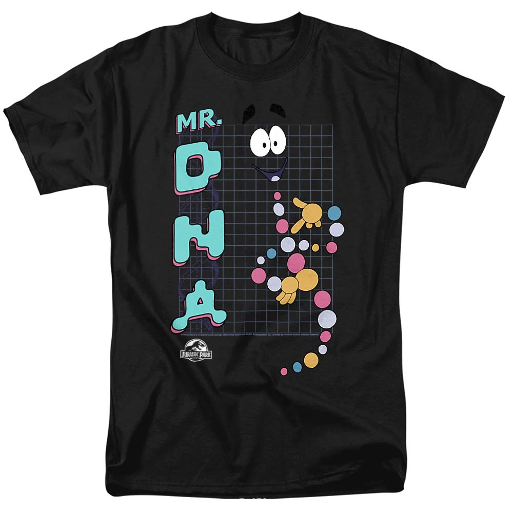JURASSIC PARK MR DNA T SHIRT - This unisex adult t shirt looks stylish on both men and women so it's great for easy, everyday wear. PRINTED IN USA - All designs are printed in our high-tech printing facility right here in Detroit, MI. Each shirt is printed on the highest quality fabrics, are 100% cotton and machine washable. OFFICIALLY LICENSED - Each of our designs are 100% officially licensed. The designs are created by our incredibly talented in-house graphic art team who often hand draw and illustrate each t shirt design. Proudlydesigned & printed in the USA. WASH & WEAR - No high maintenance care instructions here. Just toss this little beauty in the washer on cold and tumble or hang dry. Love this design and want to see more of it? Check out our other merch to view this on alternate body styles! PERFECT FAN GIFT - Trevco's graphic tees are perfect for giveaways, birthday presents, Christmas & holiday gifts, swag/goodie bags, or just treating yourself! Jurassic Park Mr Dna Unisex Adult T Shirt, Black, 2X-Large