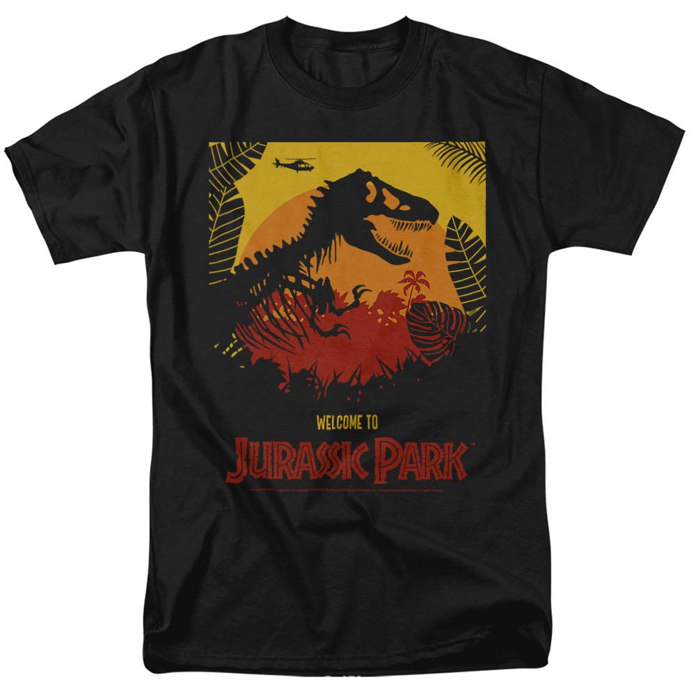 JURASSIC PARK WELCOME TO JP T SHIRT - This unisex adult t shirt looks stylish on both men and women so it's great for easy, everyday wear. PRINTED IN USA - All designs are printed in our high-tech printing facility right here in Detroit, MI. Each shirt is printed on the highest quality fabrics, are 100% cotton and machine washable. OFFICIALLY LICENSED - Each of our designs are 100% officially licensed. The designs are created by our incredibly talented in-house graphic art team who often hand draw and illustrate each t shirt design. Proudlydesigned & printed in the USA. WASH & WEAR - No high maintenance care instructions here. Just toss this little beauty in the washer on cold and tumble or hang dry. Love this design and want to see more of it? Check out our other merch to view this on alternate body styles! PERFECT FAN GIFT - Trevco's graphic tees are perfect for giveaways, birthday presents, Christmas & holiday gifts, swag/goodie bags, or just treating yourself! Jurassic Park Welcome To Jp Unisex Adult T Shirt, Black, Large