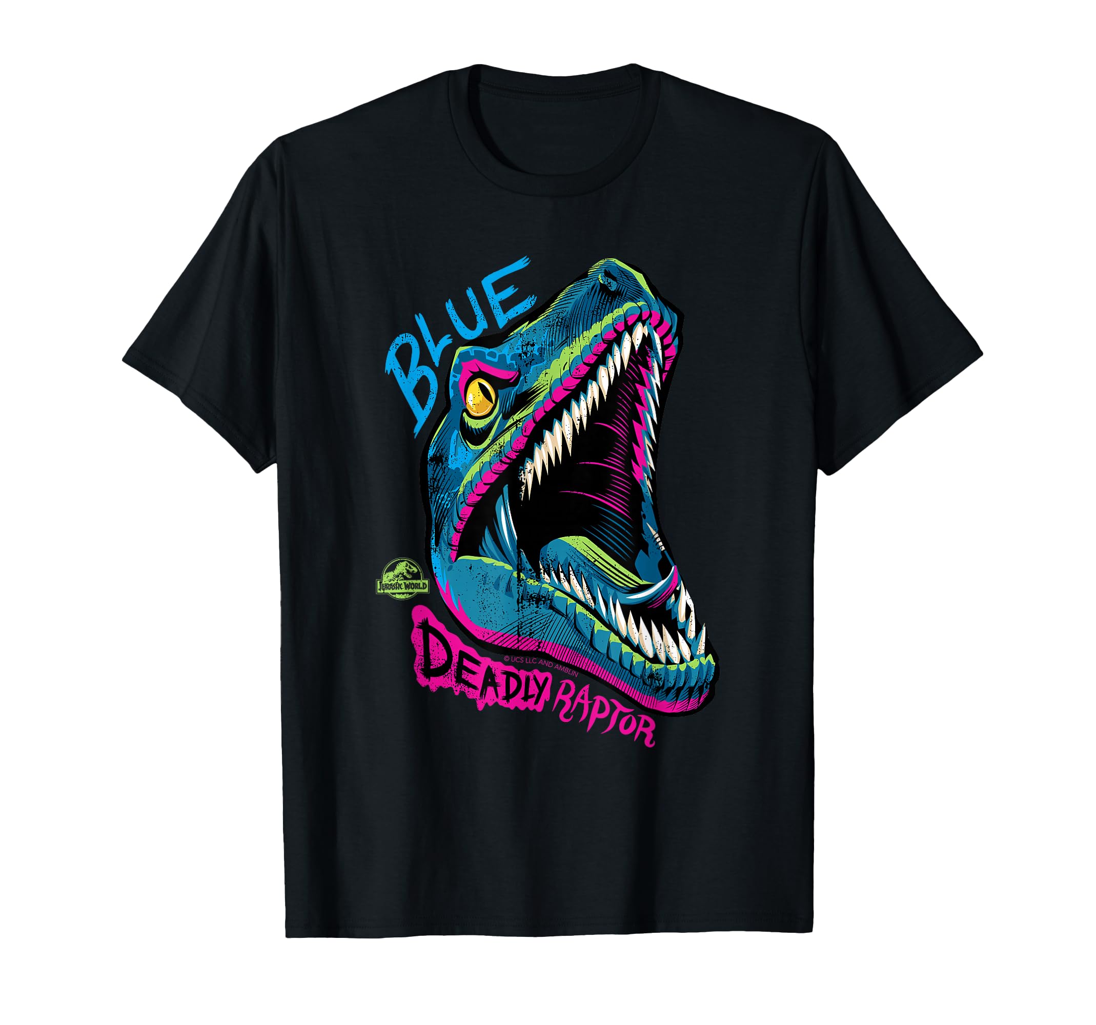 Dinosaur Toy design. Welcome to Jurassic Park! It's time to celebrate Halloween on Isla Nublar. Jurassic Park Halloween Blue Deadly Raptor neon design available in graphic t-shirts, tanks, sweatshirts, hoodies, zip hoodies, cell phone grips, phone cases, totes, and throw pillows. The perfect gift for the dinosaur fan that also loves a good scare. Lightweight, Classic fit, Double-needle sleeve and bottom hem