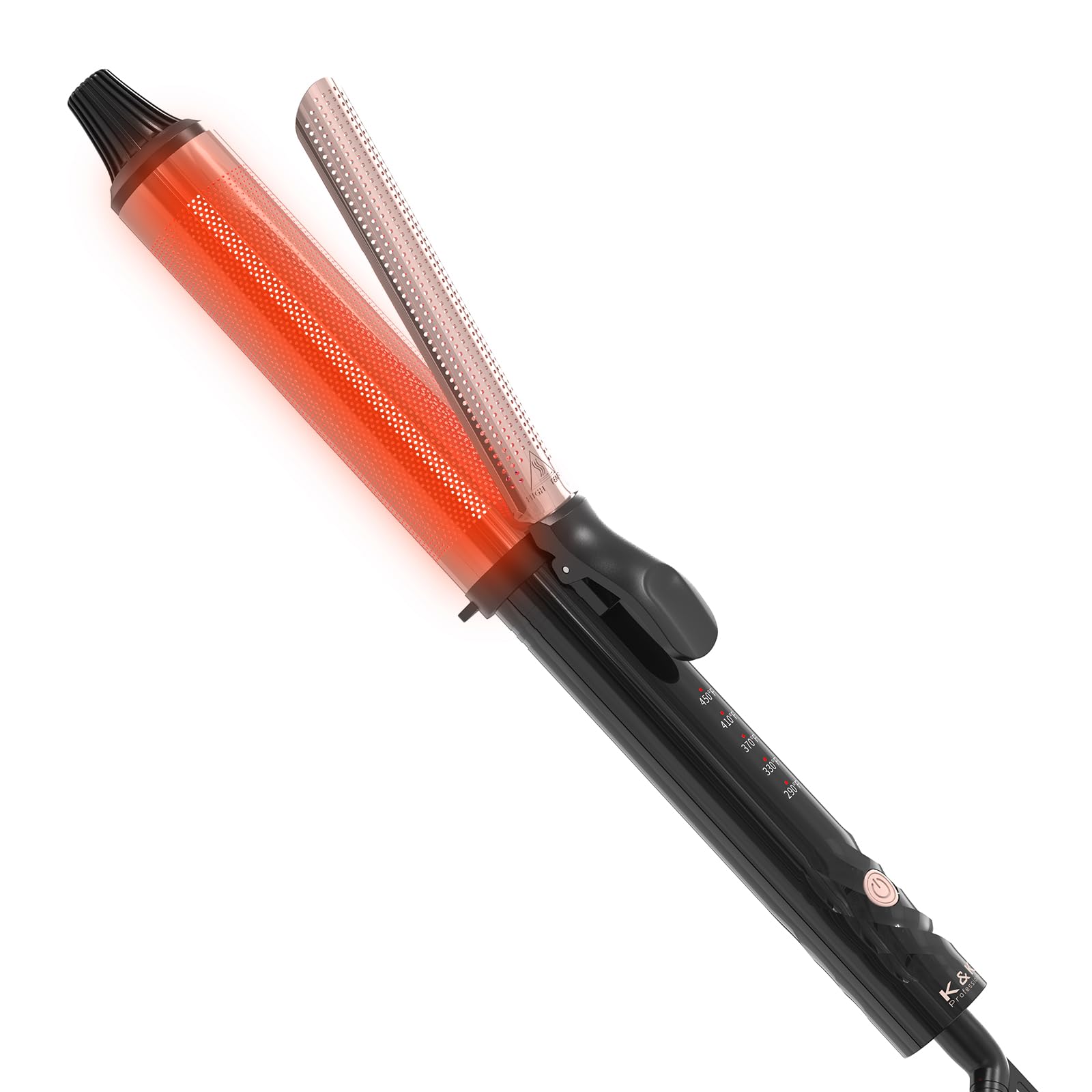 【INNOVATIVE INFRARED RED LIGHT THERAPY】This is the latest upgrade of full body red light therapy device in 2025. Unlike other products, this light therapy curling iron has pipe LED lights, containing 760nm,1400nm chips for more comprehensive hair care. This doubles the accuracy and targeting of infrared light therapy 【MORE FASR HIGH TEMPERATURE】Equipped with the latest infrared light wave heatingtechnology,80% faster heating than MCH, PTC andother traditional heating body, heat up in 10 seconds 【ENHANCED RED LIGHT】The red light therapy hair curling iron adopts a large red light panel design, with both continuous and intermittent modes. It combines 760nm (visible red) for surface use and 1400 (invisible infrared) for greater depth. 【SALON-LEVEL HARE CARE AT HOME】The effect of red light therapy on the body requires your persistence. Frequency of use: 3-5 times a month, 10-30 minutes each time,with 60 Minutes Automaticshut off 【PROPRIETARY TECHNOLOGY INFRARED TECHNOLOGY】: Infrared heating technology penetrates hair from the inside out for reduced frizz and long-lasting curls. Achieve salon-quality curls from the comfort of your home with the K&K 1.5 inch 1-Infrared Professional Infrared Hair Curling Iron Heater Ceramic Barrel. This versatile curling iron features a ceramic barrel that stays hot, allowing you to create medium to large curls effortlessly. The infrared technology helps lock in moisture, leaving your hair looking shiny and healthy. With dual voltage capability, this curling iron is perfect for travel, ensuring you can maintain your desired hairstyle no matter where you go. Measuring 1.5 inches, the barrel size is ideal for those with medium to long hair lengths. Experience professional-grade results with this travel-ready curling iron from K&K.
