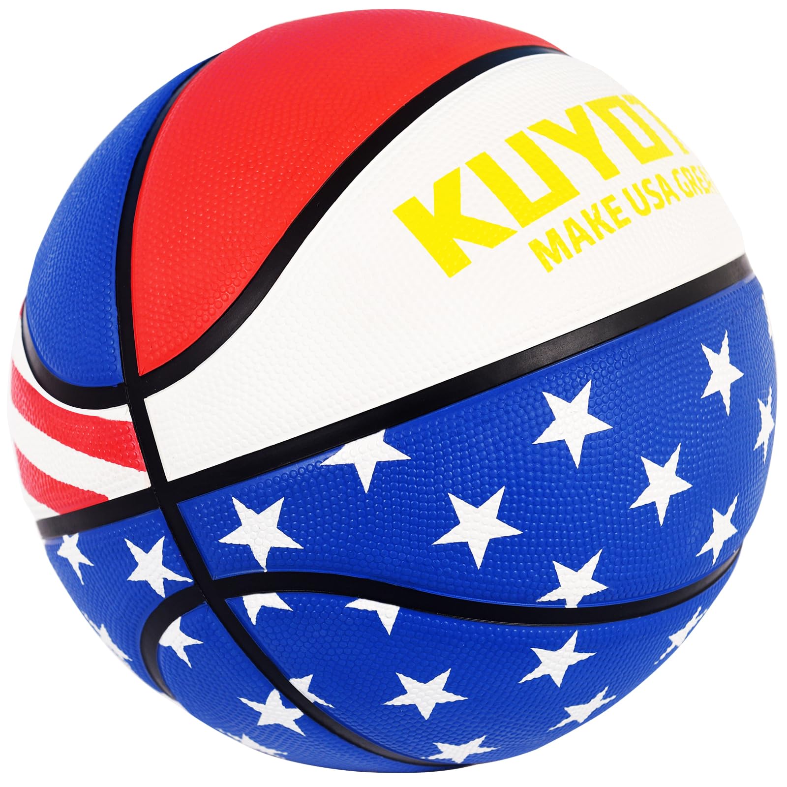 KUYOTQ Size 5 (27.5") Basketball is made of thickened premium rubber for durability outdoor and indoor. Perfect for everyday basketball practice or games for boys and girls aged 4-12.Fashion Flag Design let you shine on the field.