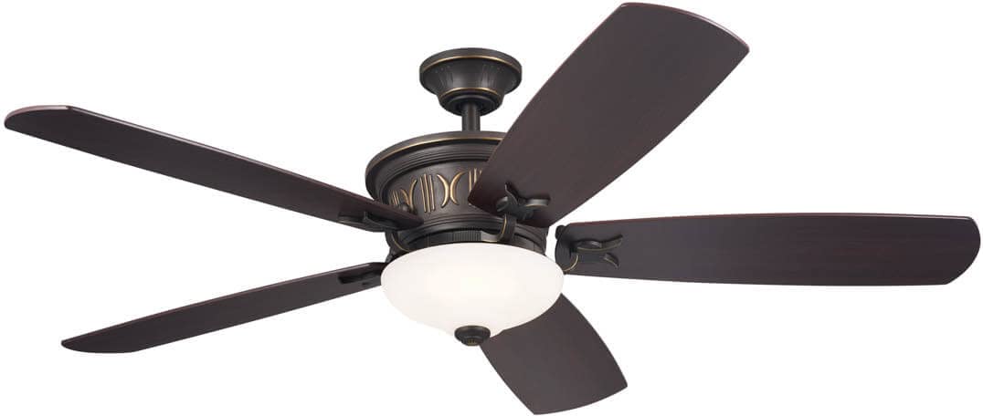 Effortlessly blending the old with the new, this Luxe Traditional fan is destined to be the center of attention Includes an 8-inch integrated, dimmable 3000K LED light, delivering ambient light to the room Its full function wall control system lets you dim the light, choose from 3 speeds, and rotate in forward or reverse Our proprietary Olde Bronze is a rich, antique brown finish, reminiscent of a dark patinaed bronze with gold highlights Steel body and plywood blades are ideal for long-term use