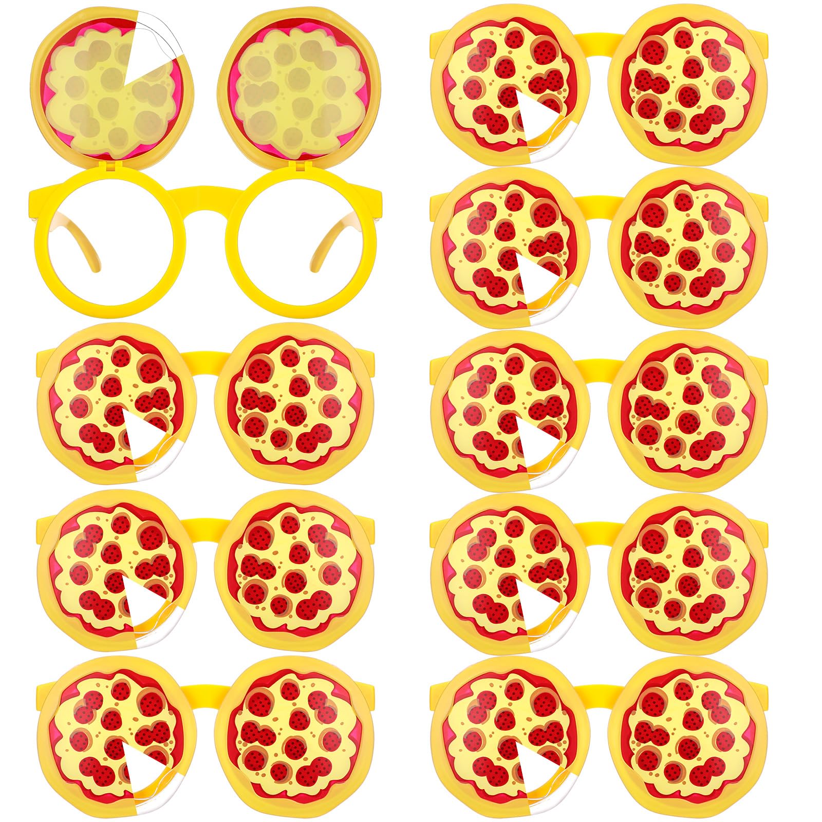 Ample Quantity: you'll receive 12 pairs of pizza themed glasses; The sufficient quantity is more than enough to meet your daily needs; Their unique design makes them even more appealing, and they are sure to win people's hearts Versatile Photo Props: use these fun themed props that showcase pizza as interesting photo accessories; They help you avoid boring poses, ensuring that every photo is filled with laughter and joy from the party decorations Sturdy and Comfortable: these pizza glasses are lightweight; Made from PC materials, they have a robust structure, are durable and unbreakable; They're comfortable to wear for long periods, making them suitable for your parties; You can wear them for extended periods without feeling discomfort, making them ideal for celebration events Eye Catching Design: the whimsical pizza design of these glasses serves as an ideal conversation starter, creating an atmosphere of laughter and delight at the party; They'll make your party a truly memorable event Wide Application: our pizza themed glasses are suitable for various parties, such as pizza lover parties, birthday parties, summer parties, Hawaiian parties, graduation parties, bachelor parties and other fun gatherings; They are the ideal accessory for any festive celebration, allowing you to express your playful side Features: Unlimited Charm: With their unique pizza shaped design glasses, they are eye catching. Whether you're having fun in daily life or partying hard, they can effortlessly capture everyone's attention and fully meet all your needs. Versatile: Whether it's a pizza lovers' party, a birthday party, or a summer carnival party, they are a snug fit for all kinds of parties, allowing you to fully show your playful and cute side. Specifications: Material: PC Color: yellow, brown Size: as shown Package includes: 12 x Pizza glasses Notes: Manual measurement, please allow slight errors on size. The color may exist a slight difference due to different screen displays.