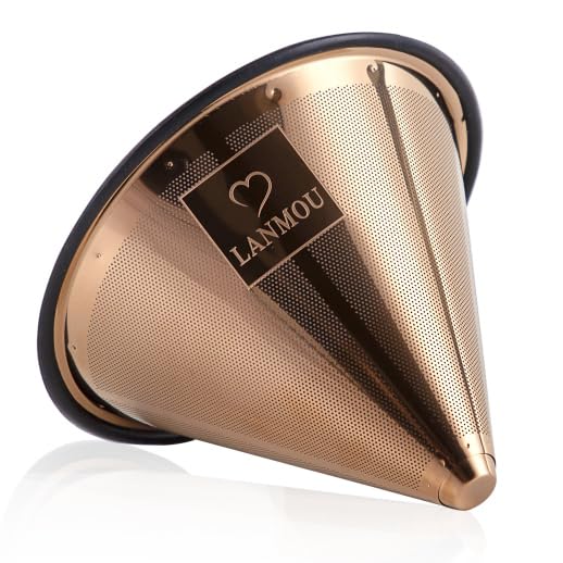 🎁 Great Fit and Well-compatible: Our pour over coffee filter is made to accommodate most coffee makers and is compatible with the majority of regular coffee drippers like Chemex coffee maker (6, 8, and 10 cups) filters. ☕ Bold & Better Coffee: Experience the pure essence of coffee bean oils and nutrients in your coffee. Our coffee filters give you a richer flavor with all the goodness flowing through the pour-over coffee maker in your cup. Get more flavorful brew, grit-free and paper-taste-free ♻ Cost-effective and Environment-Friendly: Go paperless! You don't need to buy single-use coffee strainers anymore. Replace 25000 paper filters with 1 metal coffee filter cone by switching from paper to metal. Save your money as well as your planet. 🔝 Easy Cleanup: Our coffee pour-over has super convenient maintenance. To clean up, you just have to pour some warm water over it after emptying the coffee grounds. Moreover, we recommend descaling this metal coffee filter every 2-3 weeks by soaking in warm water and distilled vinegar solution. 💯 Lifetime Satisfaction Assurance: Our guarantee confirms that you can enjoy your favorite brews worry-free, knowing that we stand behind the quality and performance of our products. Your happiness is our priority, and we're here to ensure that every cup you brew brings joy and satisfaction. Elevate your coffee brewing experience with our finest reusable mesh filters meticulously crafted to fit chemex coffee filters and majority coffee drippers. Manufactured from high-quality stainless steel, providing you with a sustainable and cost-effective solution for all your coffee brewing needs. Say goodbye to the frequent expense of purchasing paper filters month after month. Invest in our reusable titanium coated metal filters and save hundreds of dollars over time. Take smart financial decision that also aids the planet- Not only do these metal filters produce a fuller-bodied cup with a more pronounced flavor profile, but they also contribute to a greener environment by minimizing paper waste. Lanmou coffee filters beat the traditional coffee filters in capturing the essential flavors and aromatic oils of your coffee while efficiently eliminating any unwanted residue. Whether you lean towards the classic Chemex pour over technique or the precision brewing of the Hario V60, our adaptable filters consistently produce exceptional results with every brew. Crafted specifically to elevate your home brewing experience, our product empowers you to create café-quality pour-over coffee in the comfort of your own kitchen. Our product comes with a complimentary 13 cm spoon to help you measure and scoop your favorite coffee grounds with precision. Specifications: Dimensions: 5.12" (W) x 5.12" (H) Inner filter hole diameter: 40 μm Colors: titanium coated rose gold Material: 18/8 304 stainless steel + BPA-free silicone Dishwasher and microwave safe
