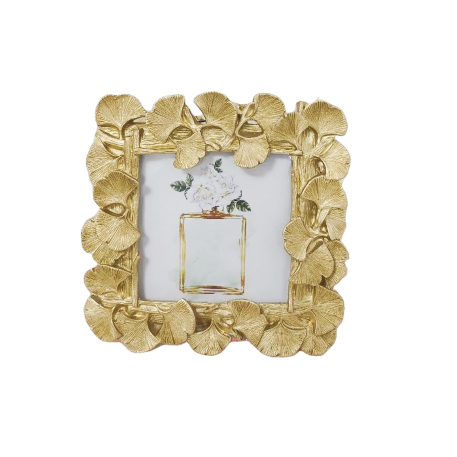 Size: Frame diameter is 6x6 inch ,inner frame diameter is 4x4 inch . Suitable for 4x4 inch photos. Material:Made of premium-quality resin. Enhance your decor with our exquisite gold resin ginkgo leaf photo frame. Perfect for 4x4" photos, its vintage charm adds a touch of beauty to any home or office. Sturdy construction and a real glass front ensure clarity and longevity. This multi-functional frame stands tall on desks or hangs gracefully on walls. Made from eco-friendly resin with a black velvet backing, it's both stylish and practical. Display your memories with pride. Package include: Each package has 1pcs. The photo frame is suitable for tabletop vertical display on desks, cabinets and worktops, suitable in any room.