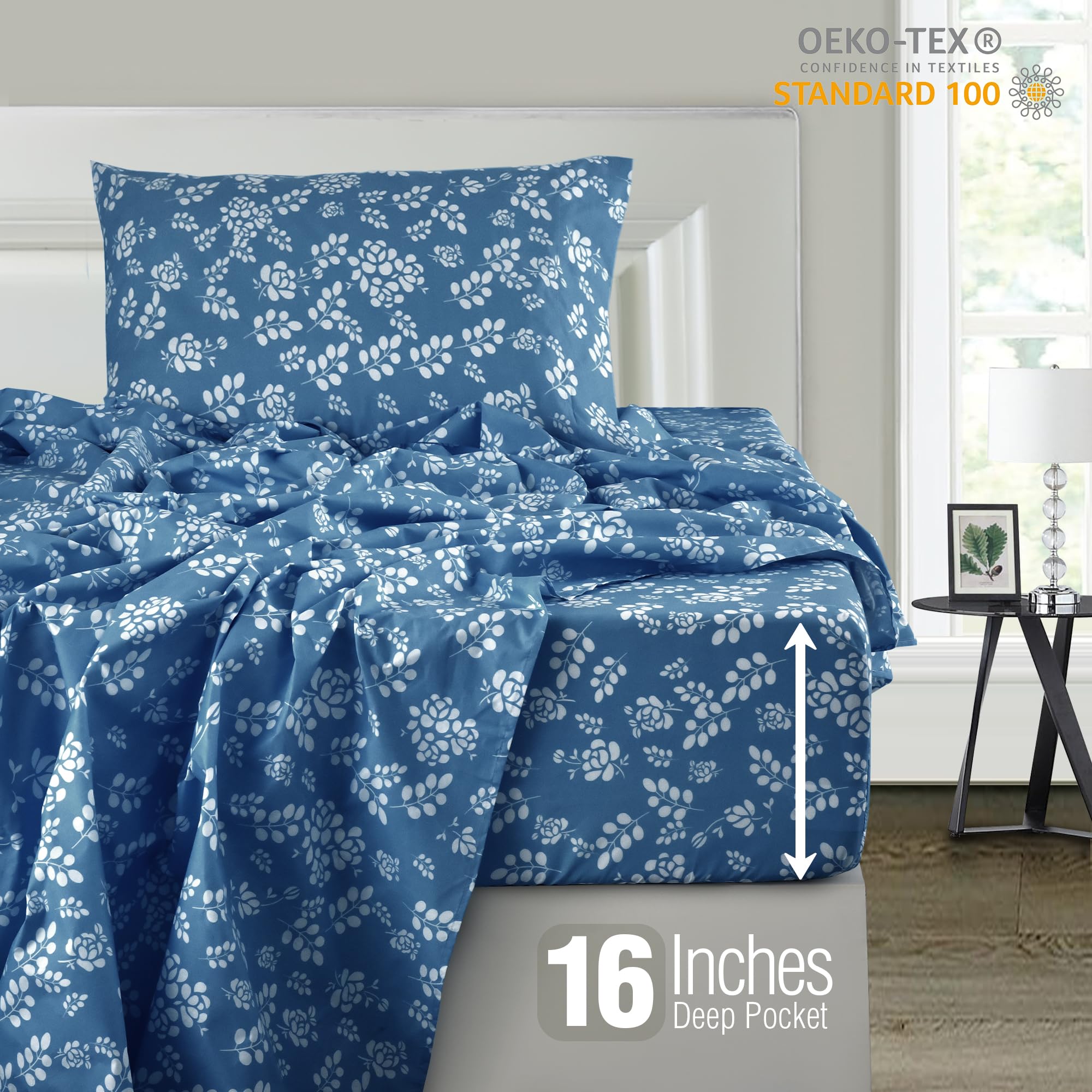 Elegant Floral Print Decor - Add charm and color to your bedroom with this soft, floral printed sheet set. A perfect fit for modern, boho, or cottage-inspired décor. 3-Piece Twin XL Sheet Set - Includes 1 flat sheet (66" x 102"), 1 fitted sheet (39" x 80", fits mattresses up to 16"), and 1 embroidered pillowcase (20" x 30" + 4"). Extra length makes it perfect for college dorm beds or adjustable bases. Perfect for All Seasons - Designed with moisture-wicking technology, these breathable sheets offer excellent airflow—keeping you cool in summer and cozy in winter. Ideal for hot sleepers and summer bedding setups. Wrinkle-Resistant & Easy Care - These sheets are fade-resistant, wrinkle-free, and machine washable. A great choice for busy households or dorm life.. Safe, Stylish & Gift-Ready - OEKO-TEX certified, free from harmful chemicals. Ideal for guest rooms, dorms, and as a practical housewarming or dorm gift. Charming Style & Everyday Comfort – LUX Décor Floral Queen Sheet Set. Bring a fresh and elegant touch to your bedroom with this ultra-soft microfiber sheet set featuring a graceful floral print. Lightweight, breathable, and cozy, it's the perfect balance of softness and style for year-round comfort. Includes 1 flat sheet, 1 deep-pocket fitted sheet (fits mattresses up to 16"), and pillowcases. Crafted for a tailored fit and a coordinated, decorative finish. Made from breathable, double-brushed microfiber that’s gentle on skin and ideal for hot sleepers. Moisture-wicking fabric keeps you cool during summer nights and cozy through colder months. These fade-resistant, wrinkle-free sheets are machine washable and quick-drying for easy care. Enjoy a polished, fresh-looking bed without extra effort. OEKO-TEX certified for chemical safety and hypoallergenic comfort. A perfect addition to guest rooms, dorm beds, or as a thoughtful gift for housewarmings and seasonal décor refreshes.