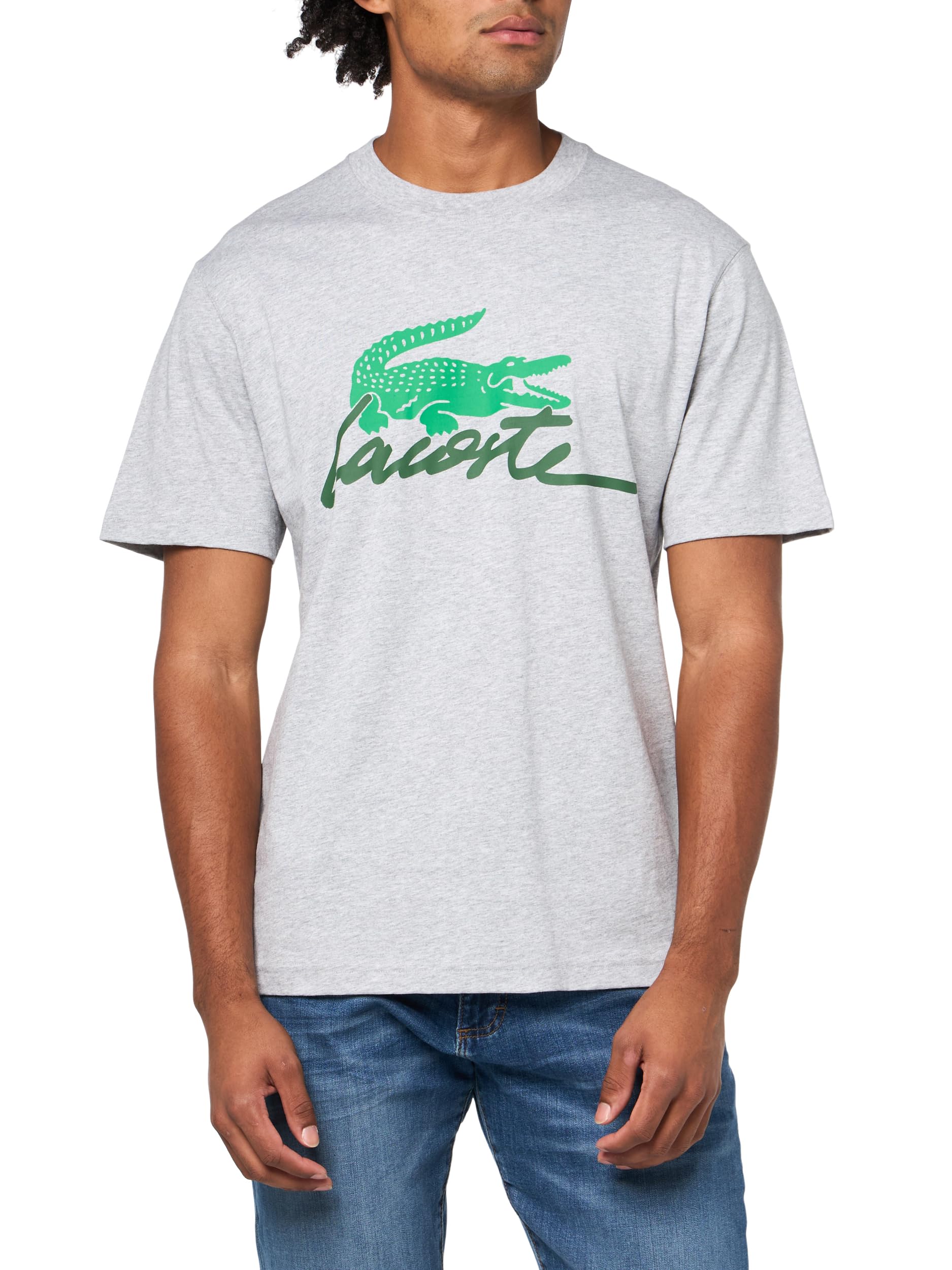 Heavy cotton jersey Classic, comfortable fit Lacoste signature and crocodile print on front Embroidered crocodile on back of collar