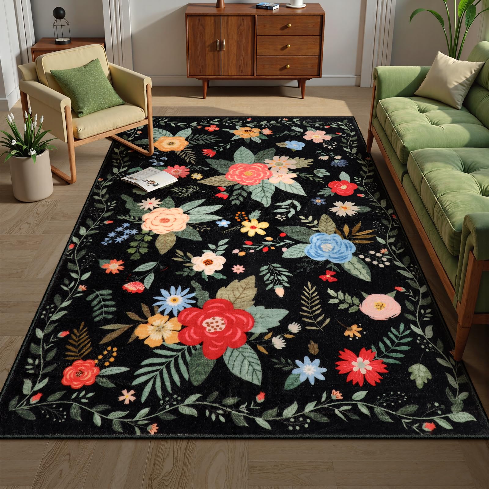 Bring affordable luxury to every room with Lahome’s polyester rug. Featuring watercolor florals on black, pink, purple, or green backgrounds, its artistic design brightens living rooms, bedrooms, nurseries, and kitchens. As part of our mission to create comfortable, accessible home essentials, this rug combines style with practical innovation.