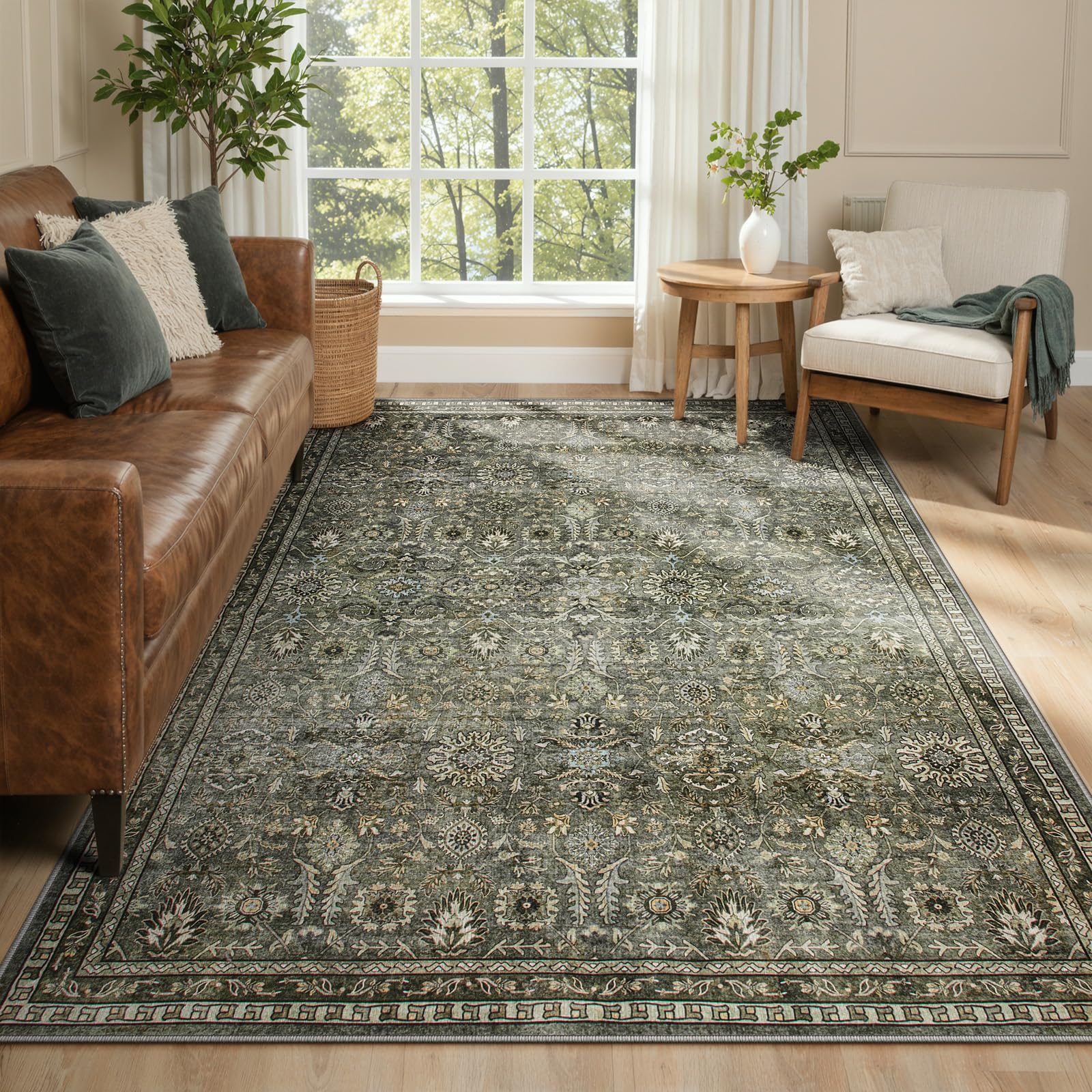 Lahome Sage Green Area Rug 6x9, Machine Washable Rugs for Living Room, Boho Vintage Soft Bedroom Carpet for Dining Room Nursery Apartment Office, Dark