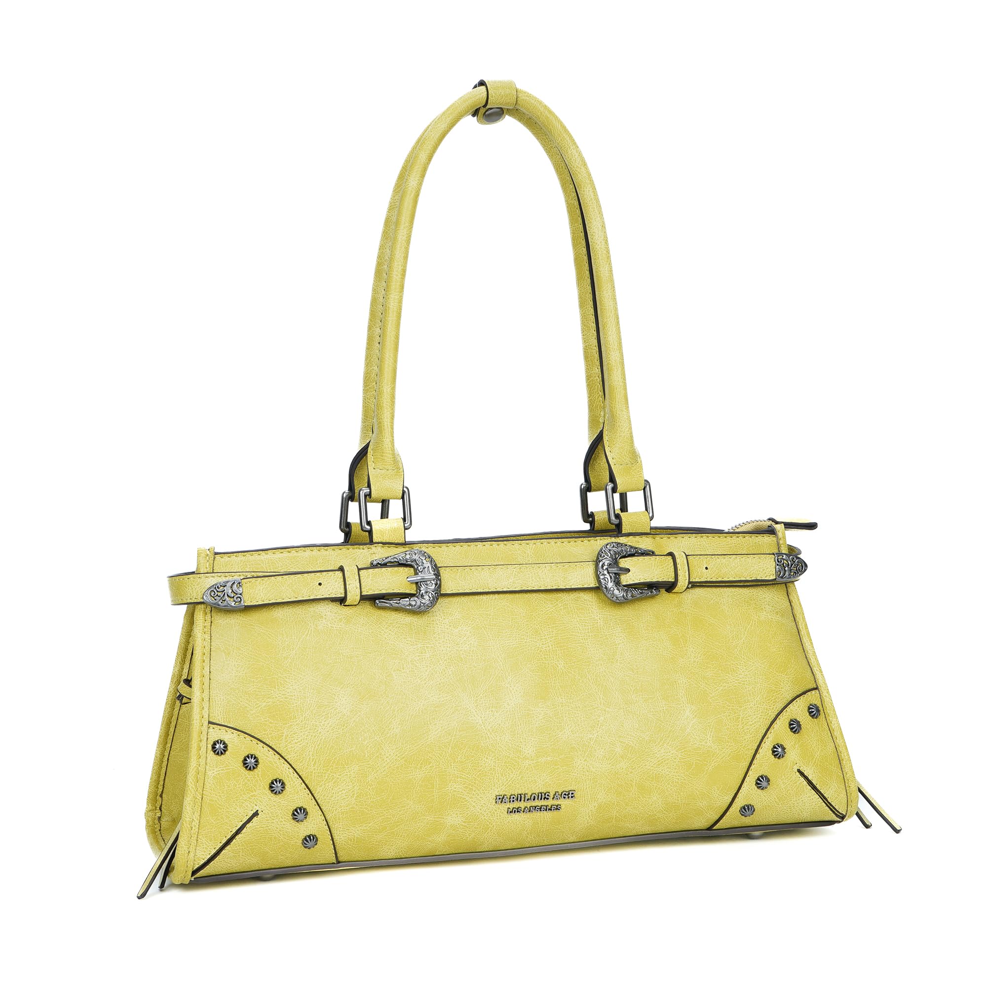 【Vintage Cracked Vegan Leather】: This east west shoulder bag for women is made of cracked two-tone leather,which is used to evoke a weathered, retro, or artisanal look. The surface of the tote bag is very smooth, with a bright color, but it has a unique retro feel, making it more understated and luxurious. The hobo shoulder bag has strong wear resistance, high durability, and is not easily deformed after long-term use, making it suitable for carrying during commuting or travel 【Fashionable Edgy Design】: The shoulder bag has slightly edgy features, such as western-style buckles, the rivets, the cinching on the sides, the detail on the bottom sides, and the feet on the bottom so it doesn't get wrecked if you have to put it on the floor.Not quite cowgirl, but definitely style forward,making tote unique and elegant. Lightweight, the inside of the purse is lined with a pretty paisley print. All zippers and attachments compliment the design of the purse and work just right 【 Appropriate Size 】: 15.5 '' L × 5 '' W × 8 '' H , Top handle: 9 inches. It goes east west instead of deep it's much easier to find things a lot ! Large capacity design allows you comfortably hold your wallet, cosmetics, and other daily supplies.Double sturdy top handles allow it to be a work tote bag, shoulder handbag,or top handle tote bags 【 Exquisite details】:Length of the handle is 9 inches, which is just suitable for you to place it on your shoulder or arm. The buckle at the top of the handle ensures that you won't have a handle strap fall off while doing things. Give you an extra sense of security.The handles are comfortable and flexible, with quality material that doesn't crease or crack. The hardware has great detail and are securely placed on the bag. The zipper works great and moves smoothly with no catching or hang-ups 【Multiple Occasions】: Pair this retro-style shoulder bag with your favorite jeans, a lace top for a coffee run, brunch date, or casual workday. Its versatile size and organization (think inner slip pocket for keys, main compartment for wallet and essentials) keep you effortlessly organized while making a distinct fashion statement. It’s not just a everyday shoulder bag; it’s an expression of your laid-back yet intentional style.FABULOUS AGE bag for women makes you fabulous at every age