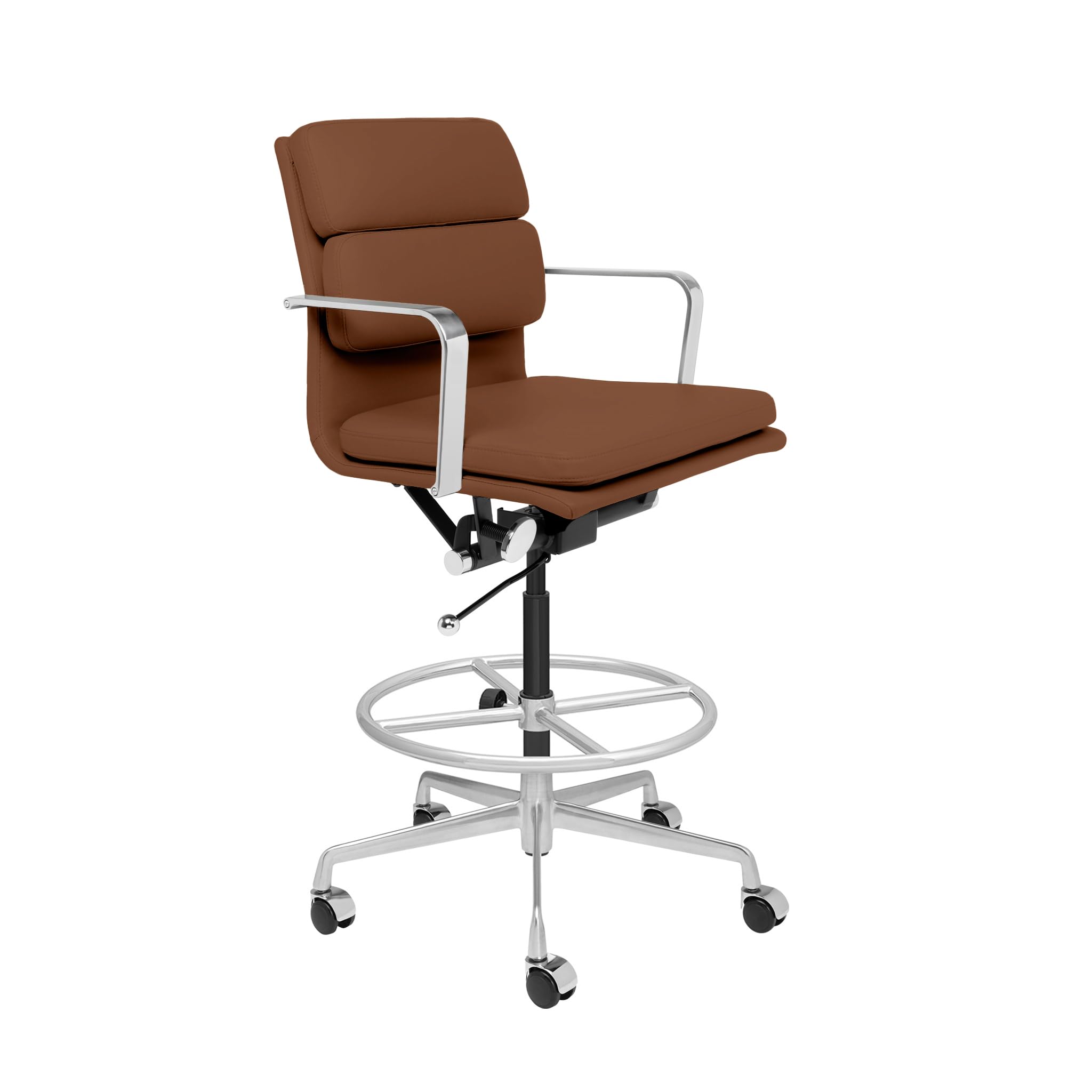 Leatherette Upholstery with Three Soft Pads. The SOHO Soft Padded chair is the softest in the SOHO series, featuring leatherette seat and back cushions for those who are looking for a softer, but still stylish, seating option. Strengthened Steel Frame with Removable Arms. The SOHO frame is made from solid steel with a beautiful chrome-plated finish. The matching aluminum arms are easily attached or detached to suit a variety of needs. Class 4 Gas Lift for Lifetime Performance (Up to 400 Pounds). We only use BIFMA-rated Class 4 lifts that are the most durable in the industry, ensuring a lifetime of trouble-free raising and lowering. Durable Aluminum Base with Steel Foot Ring. The aluminum base not only looks great, but it’s also the strongest base on the market — supporting over 400 lbs. The base, foot ring, and stationary glides also provide a secure and reliable foundation for drafting height requirements. Super Fast Assembly in Minutes. Wheels > gas lift > seat > arms. All in just a few minutes! Less time assembling, more time accomplishing important things. For years, the SOHO series management chair has been the #1 choice for mid century modern office chairs. Made from the highest quality materials, our chairs support over 400 lbs, don't bend like cheaper versions, and have durable leatherette seating surfaces that last. Once you own one, you'll see why thousands of businesses, hotels, and interior designers consistently rely on the SOHO series from Laura.