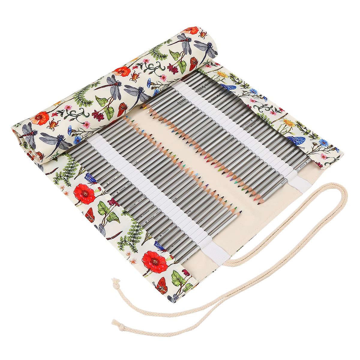 LARGE CAPACITY: 170 Individual Slots (168 pencil slots and 2 larger slots for eraser or sharpener) upper and lower double design to meet your needs, colored pencil roll keep pencils tight and safety, 2 2 hemp ropes can tied around waist, more convenient to carry and use. The stitching is straight and compact, individual elastic loops to organize your pencils better and prevent from sliding out. The flap on the end of wrap to protect the tip of pencils. ROLL DESIGN:Soft Fabric Allow You To Roll It Easily, Small Volume After Folding Will Greatly Saving Your Space, Lightweight, Washable And Unshrinkable.Easily Fit Into Your Purse Or Suitcase When You Go Out Or Travel.When Rolling Up, Two Nylon Ropes To Ensure Your Pencils Secure. Unroll And Opens Up Flat For Easy Access To Your Pencils And Sharpener. MULTI-PURPOSE:89cm x 41cm ≈ 35.04 inch x 16.14 inch,This pencil wrap fits colored pencils. gel pens and markers ( standard pencils size or slightly larger than pencil size), ordinary pencils and even art paint brushes perfectly. You can also use roll up pencils wrap as a cosmetic bag to holding cosmetic brush. PERFECT GIFT:Great for every artist of any age and level. This is a very nice gift for any coloring lover. Ideal gifts for beginners, pencil wrap holders for Office, Travel; or this can be a makeup brushes carrying case for women. Note:Pencil organizer is made of Oxford Fabric. Not only looks comfortable, but also easy to maintenance and cleaning. The case is without pencils or marker pens shown in the picture, hope you can understand. Thick Material and Well-done Stitching Ensure Pencil Wrap Will Last for Years