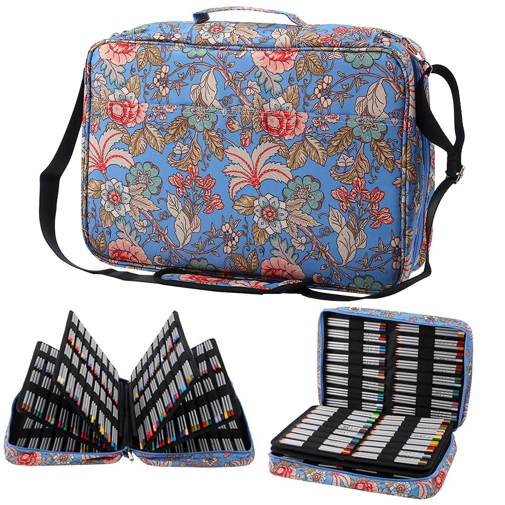 LARGE CAPACITY: It has 5 layers of 160 slots for holding (480 colored pencils or 320-328 gel pens,Each large slot can hold up to 3-4 pencils or 2-3 gel pens).Outside Tiny pocket helps to keep small notes, cards, and tickets. PORTABLE DESIGN- Hand carrying strap and adjustable, detachable snap hook shoulder strap design, make it very easy and convenient to carry anywhere for travel ,office or outdoor work. MULTI-PURPOSE:It is used widely for adults, makeup artist,painter, writers & professional for storing various tool, cosmetic brush,watercolor pencil, gel pen, marker, eraser, or could also apply to ordinary pencils at offices & art galleries. PERFECT GIFT:It's an extremely sturdy pencil holder. strong zippers will withstand heavy use, you can own this for a long period.It’s an awesome gift for young or adult for their birthday, Christmas present or back to art supplies Note:Pencil organizer is made of Polyester Not only looks comfortable, but also easy to maintenance and cleaning. The case is without pencils or marker pens shown in the picture, hope you can understand.THIS ITEM IS NOT INTENDED FOR USE BY CHILDREN 12 AND UNDER. PERFECT GIFT:It's an extremely sturdy pencil holder. strong zippers will withstand heavy use, you can own this for a long period.It’s an awesome gift for young or adult for their birthday, Christmas present or back to art supplies
