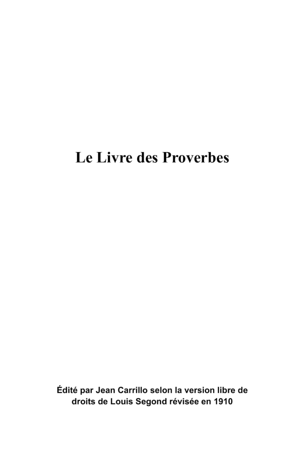 Plongez dans la Sagesse Éternelle des Proverbes – Une Lumière pour Votre Chemin Vous cherchez des réponses aux grandes questions de la vie? Vous voulez un guide intemporel pour affronter les défis quotidiens avec sagesse et assurance? Le Livre des Proverbes est bien plus qu’un recueil de maximes anciennes : c’est un compagnon spirituel, une source d’inspiration et un guide pratique pour mener une vie juste et épanouissante. Dans cette édition Louis Segond 1910, fidèle à la tradition biblique, vous trouverez : ✔ Des conseils pour une vie équilibrée : Comment gérer vos relations, vos finances, et vos décisions avec discernement. ✔ Des leçons sur la sagesse et la justice : Découvrez des principes qui vous aideront à cultiver l'humilité, l'intégrité et la patience. ✔ Des réflexions profondes sur le succès et l’échec : Apprenez à tirer des enseignements des épreuves tout en cultivant une foi inébranlable. ✔ Un trésor spirituel pour tous les âges : Que vous soyez novice ou lecteur assidu de la Bible, ces proverbes résonneront avec clarté et puissance dans votre cœur. Chaque chapitre regorge de perles de sagesse qui vous guideront dans tous les aspects de votre vie. Que vous cherchiez à renforcer votre foi, à trouver la paix intérieure ou à développer des qualités essentielles telles que la persévérance et la bienveillance, le Livre des Proverbes vous offre une boussole infaillible. Pourquoi choisir cette version? Cette traduction Louis Segond révisée en 1910 est claire, accessible et respectueuse du texte original. Elle vous permet de saisir pleinement le sens profond des enseignements bibliques tout en savourant la beauté du langage. À qui s’adresse ce livre? Aux croyants qui souhaitent approfondir leur relation avec Dieu. - Aux chercheurs de vérité en quête de principes de vie universels. - À toute personne désirant trouver des réponses aux questions essentielles de l’existence. Ne laissez pas le chaos du monde moderne vous éloigner de l’essentiel. Prenez le temps de méditer sur ces paroles inspirantes, et transformez votre vie en vous connectant à une sagesse divine. Commandez votre exemplaire dès aujourd’hui et laissez les Proverbes illuminer votre chemin vers une vie plus riche, plus sereine et plus ancrée dans la foi.