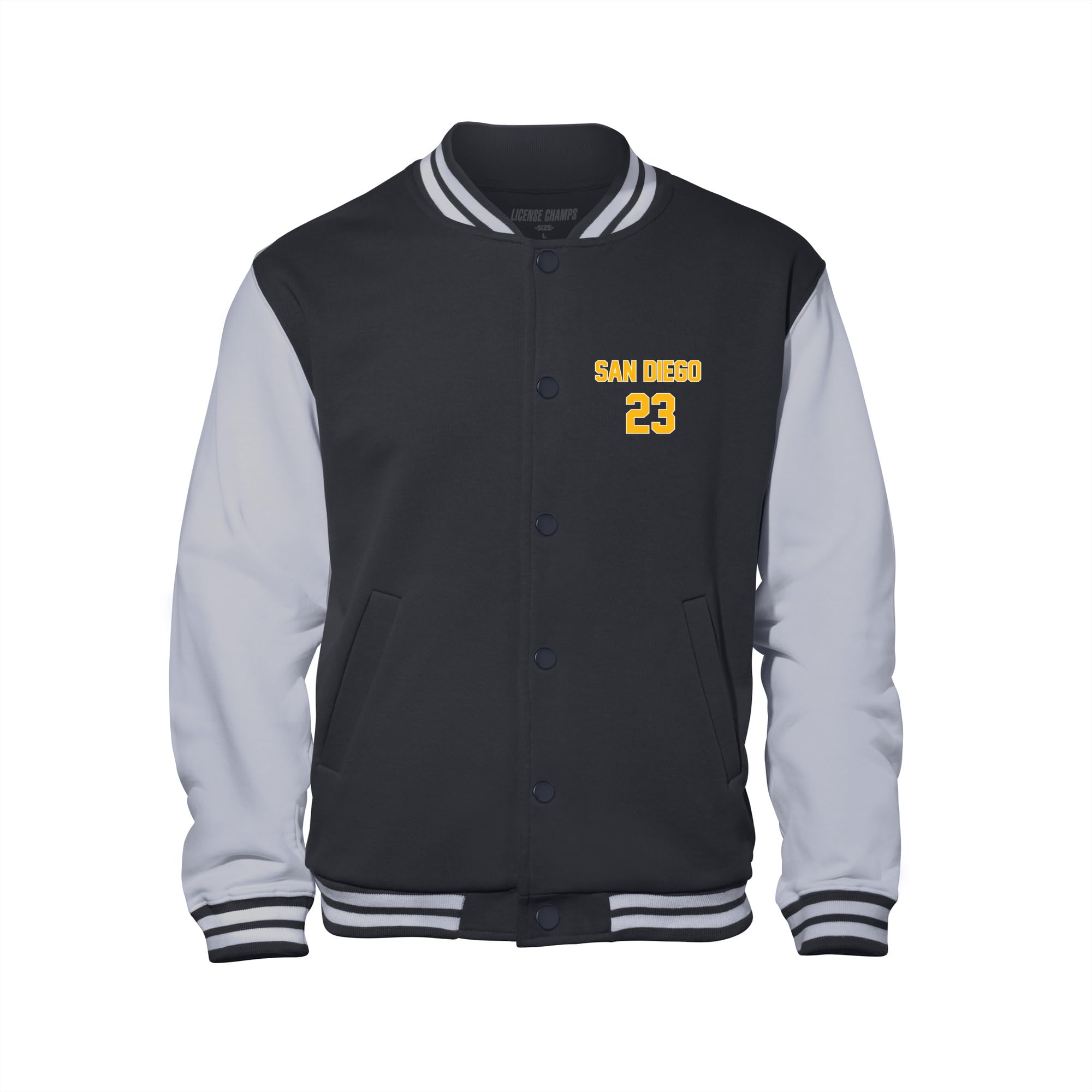 FAN APPROVED: Stand out with this MLBPA Fernando Tatis Jr Varsity Jacket! Show off your pride for the San Diego baseball team with a classic, timeless design perfect for game day or everyday wear. Represent Fernando Tatis Jr in style with official MLBPA-licensed apparel that blends comfort, warmth, and team spirit. CLASSIC VARSITY DESIGN & RETRO STYLE: Featuring iconic contrast sleeves and a timeless snap button closure, this varsity jacket delivers a bold, athletic-inspired look. Perfect for streetwear, casual outfits, or layering over hoodies and tees. PREMIUM 100% COTTON FRENCH TERRY: Made from durable and breathable cotton French terry, this jacket provides superior comfort and softness for everyday wear. Designed to withstand repeated use while maintaining its classic appeal. STRUCTURED & EYE-CATCHING DETAILS: Includes set-in contrast sleeves for a standout look, along with a 1 3/4" ribbed collar and bottom hem to enhance shape retention and add a polished, varsity-inspired finish. VERSATILE & EASY CARE: Ideal for layering in cooler weather, this lightweight jacket pairs effortlessly with joggers, jeans, or chinos. Available in bold color combinations and machine washable for hassle-free maintenance.