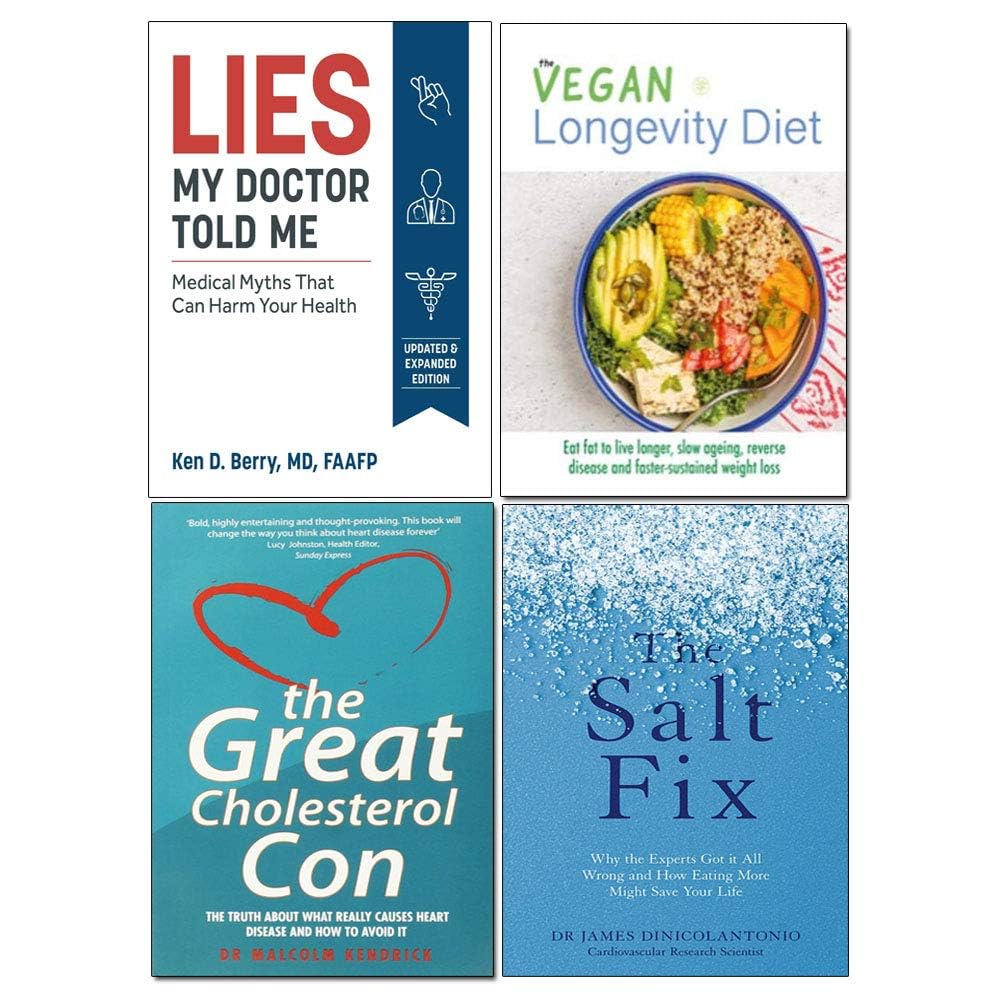 Please Note That The Following Individual Books As Per Original ISBN and Cover Image In this Listing shall be Dispatched Collectively: Lies My Doctor Told Me, Vegan Longevity Diet, Great Cholesterol Con, Salt Fix 4 Books Collection Set: Lies My Doctor Told Me: Eat low-fat and high-carb, including plenty of 'healthy' whole grains - does that sound familiar? Perhaps this is what you were told at your last doctor's appointment or visit with a nutritionist, or perhaps it is something you read online when searching for a healthy diet. And perhaps you've been misled... The Vegan Longevity Diet: Eat fat to live longer, slow ageing, reverse disease and faster-sustained weight loss... Easy, vegan recipes for healthy living, slow ageing and sustained weight loss. Many of us still shun the vegan diet with the misguided idea that it's all about eating bland-tasting greens; The Great Cholesterol Con: Statins are the so-called wonder drugs widely prescribed to lower blood cholesterol levels and claim to offer unparalleled protection against heart disease. Believed to be completely safe and capable of preventing a whole series of other conditions, they are the most profitable drug in the history of medicine.... The Salt Fix: Why the Experts Got it All Wrong and How Eating More Might Save Your Life... A leading cardiovascular research scientist upends the low-salt myth, proving that salt may be one solution to - rather than a cause of - the chronic disease crisis. 9781628603781/9781913005351/9781844546107/9780349417387